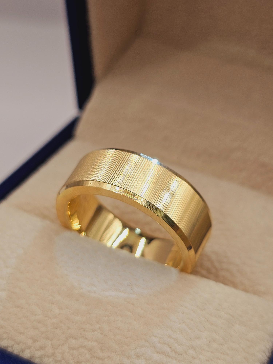🔥 Impone tu presencia con una joya que habla por sí sola: Nuestro Anillo Mil Rayas de 8 mm en Oro 18K es una pieza maestra que combina la robustez del diseño con la elegancia del oro. Con un peso imponente de 18 gramos, este anillo no pasará desapercibido, reflejando la confianza y la determinación de quien lo lleva.
