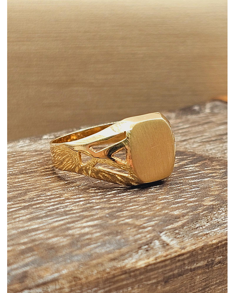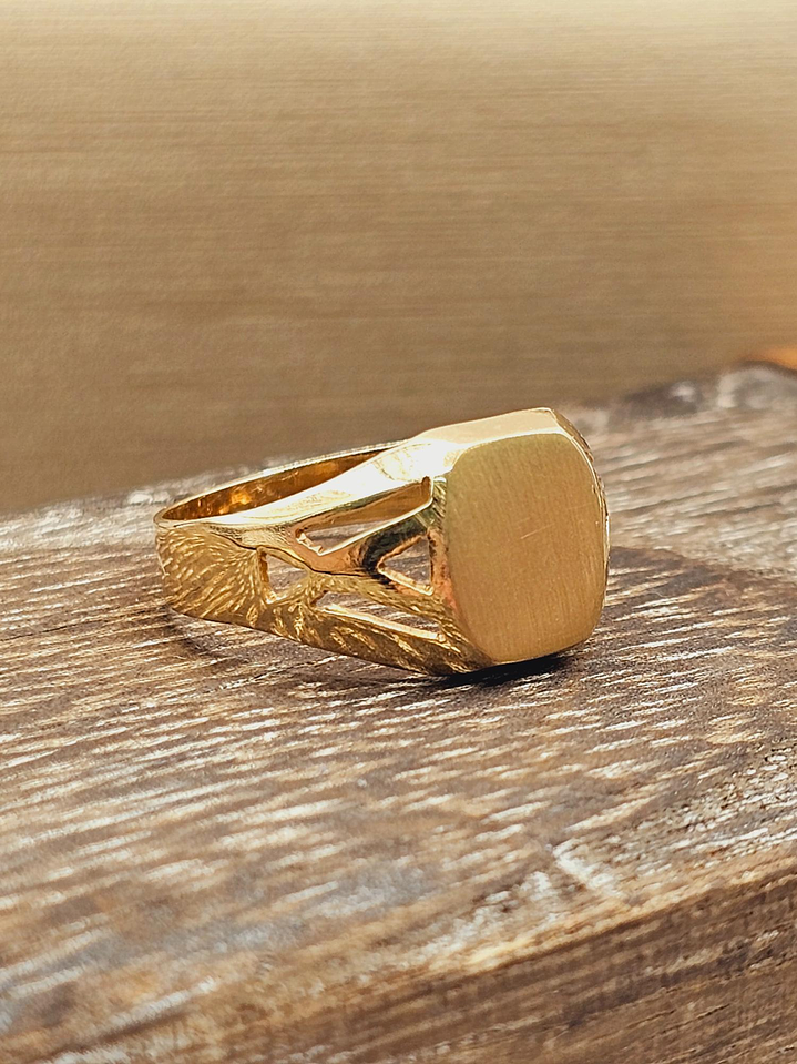 Anillo Sello Cuadrado Calado en Oro 18K: Un Sello de Estilo y Personalidad en tu Mano