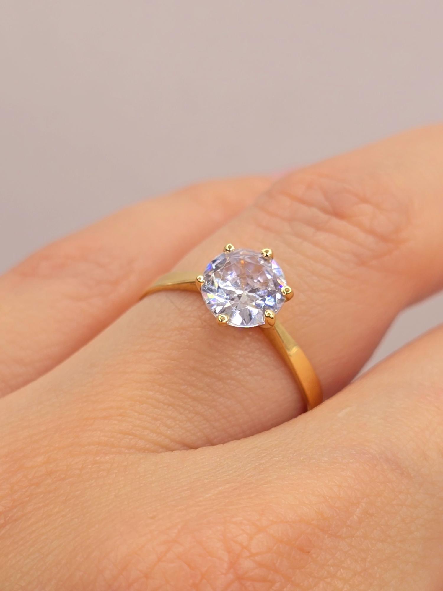 No dejes escapar la oportunidad de poseer una joya que irradia belleza y significado! Haz clic en "Agregar al Carrito" y lleva contigo el brillo eterno del Anillo Solitario Seis Grifas con Circón en Oro 18K. 🛍️🛒