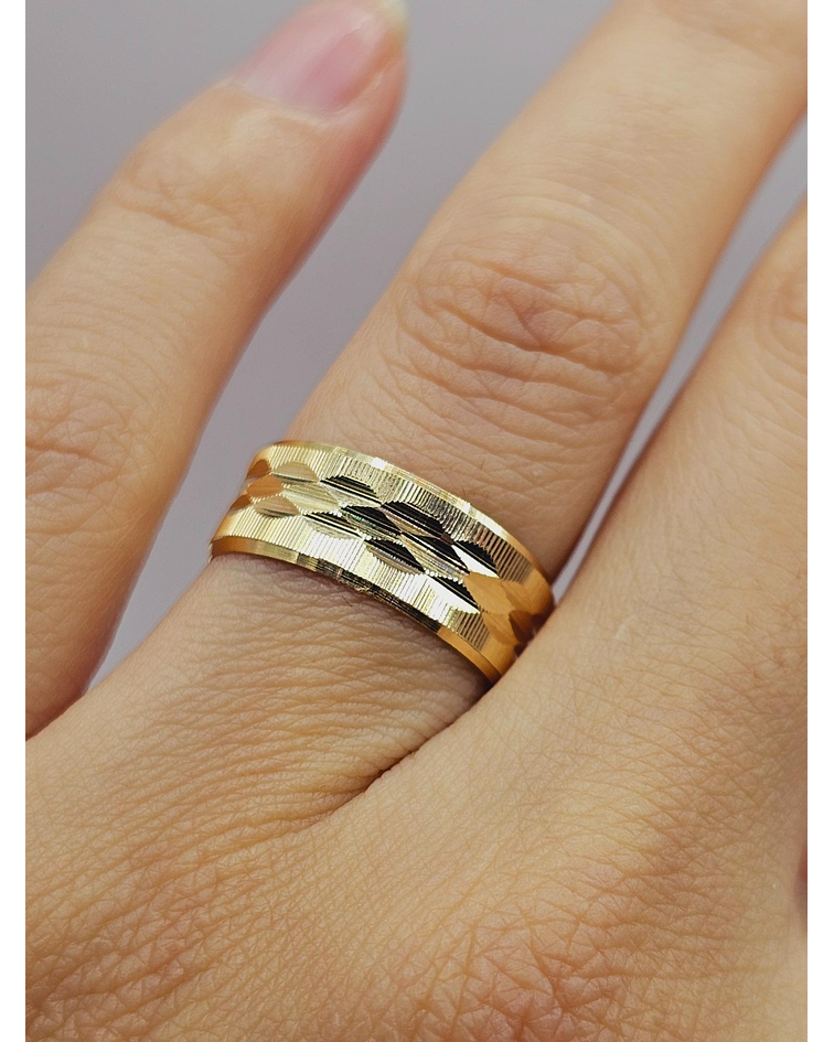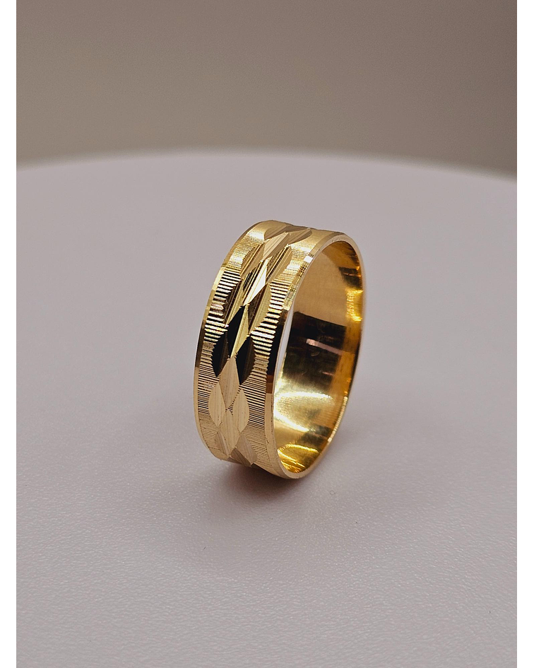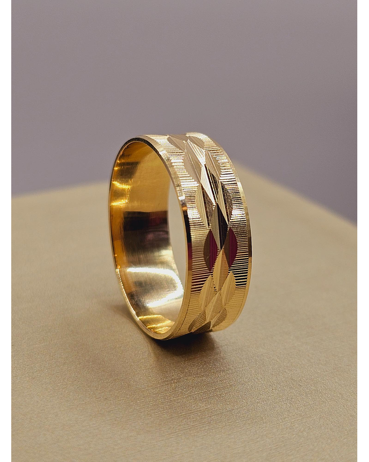 Argolla de matrimonio satinada hojas centro 7 mm 4 grs Oro 18k