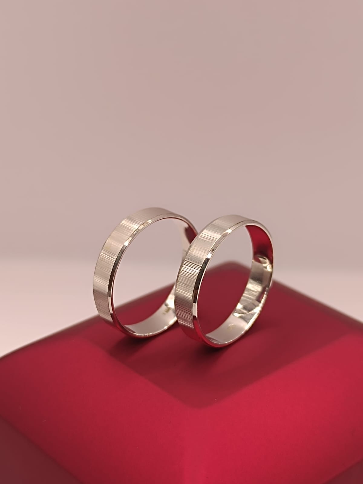 Argollas de matrimonio talladas mil rayas 4 mm 6 grs Oro blanco 18k