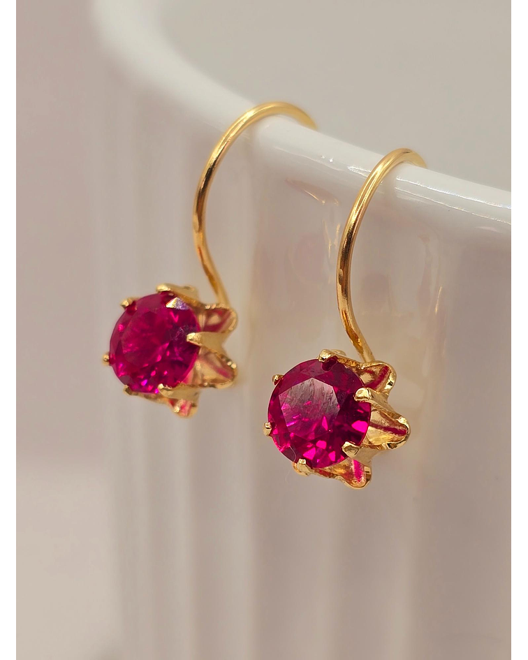 Aros chatón Italiano gancho rubí 2.2 grs Oro 18k