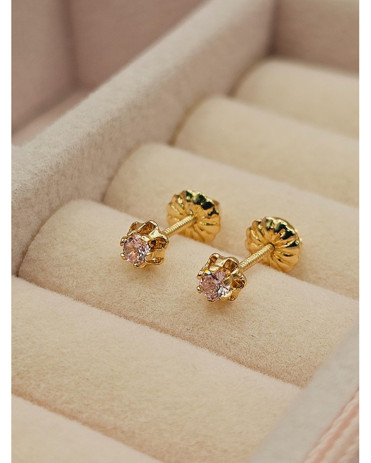 Aros chaton italiano rosa de Francia 4 mm 0.7 grs Oro 18k