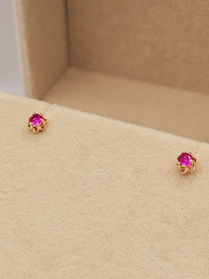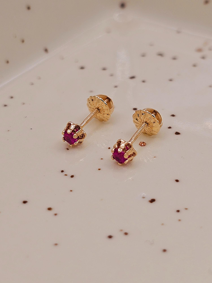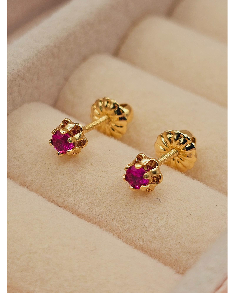 Aros chaton italiano rubí 4 mm 0.6 grs Oro 18k