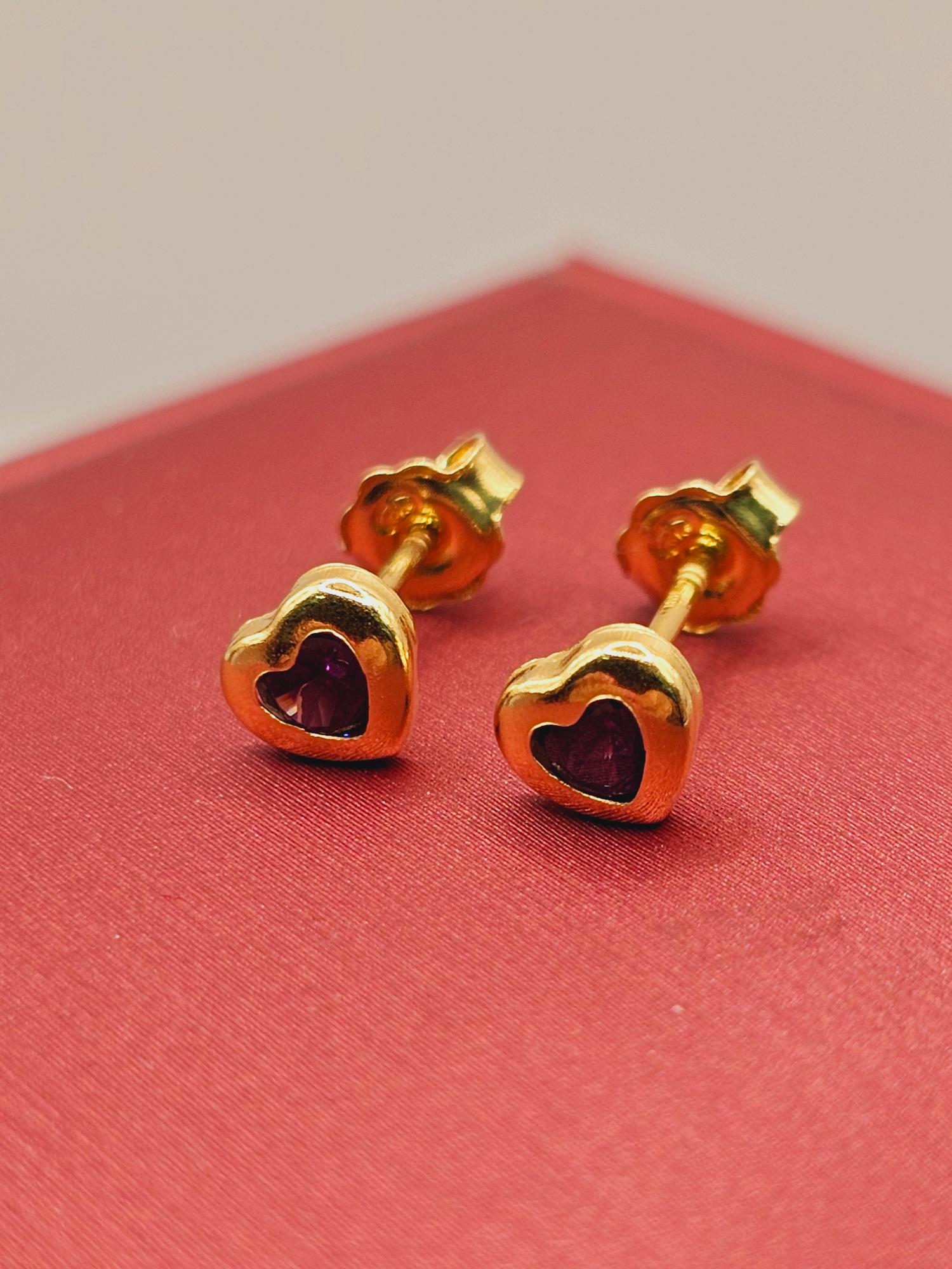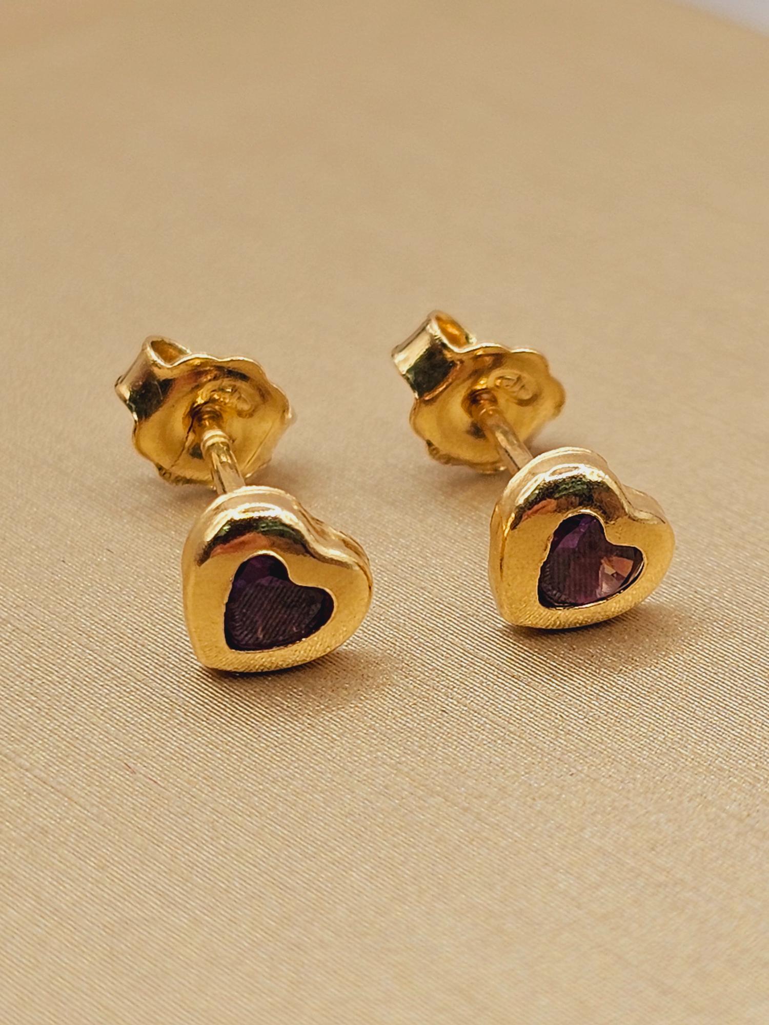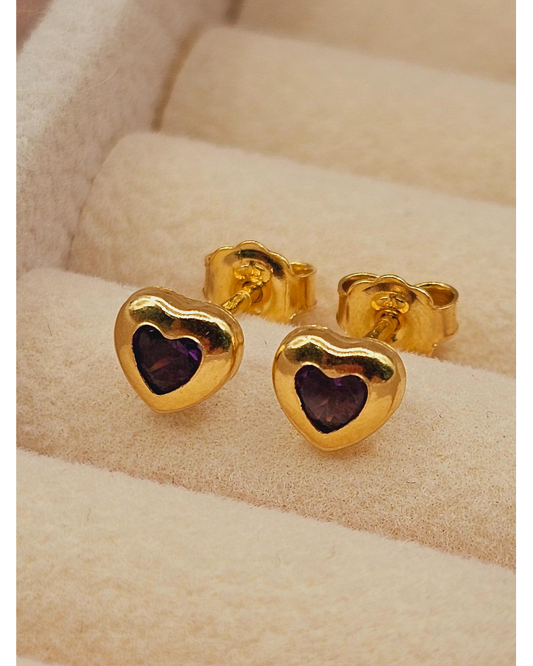 Aros Corazón Amatista 5 mm en Oro 18K: Un Toque de Amor y Serenidad en tus Orejas