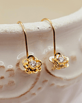Aros Doble Flor con Gancho y Circón en Oro 18K: Elegancia Floral y Destellos de Luz