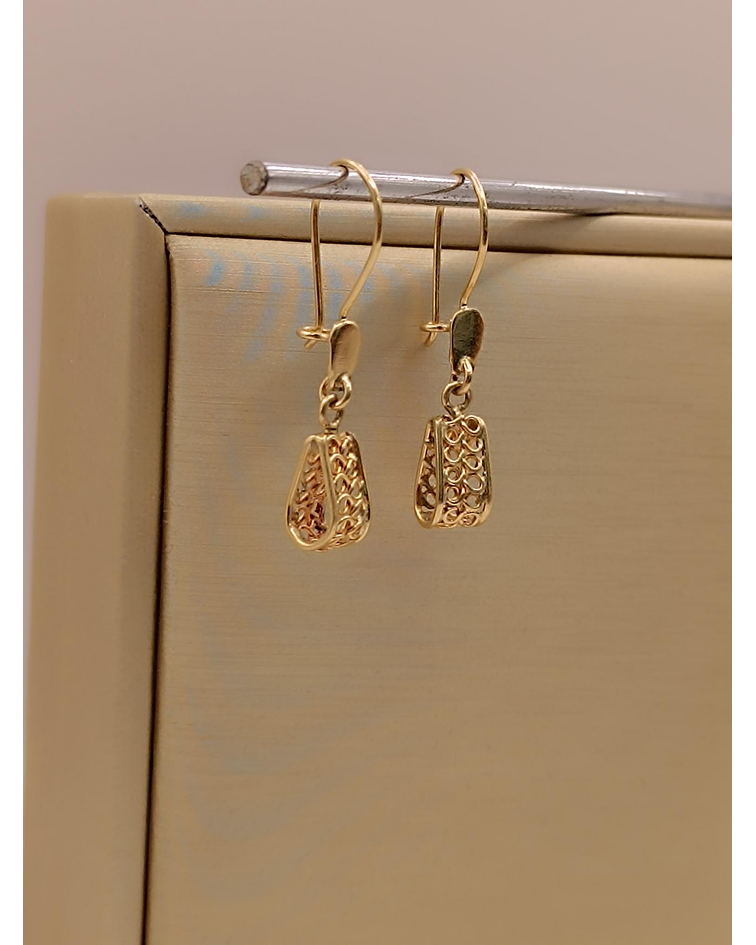Aros filigrana con gancho largo 4.5 cm 3 grs Oro 18k