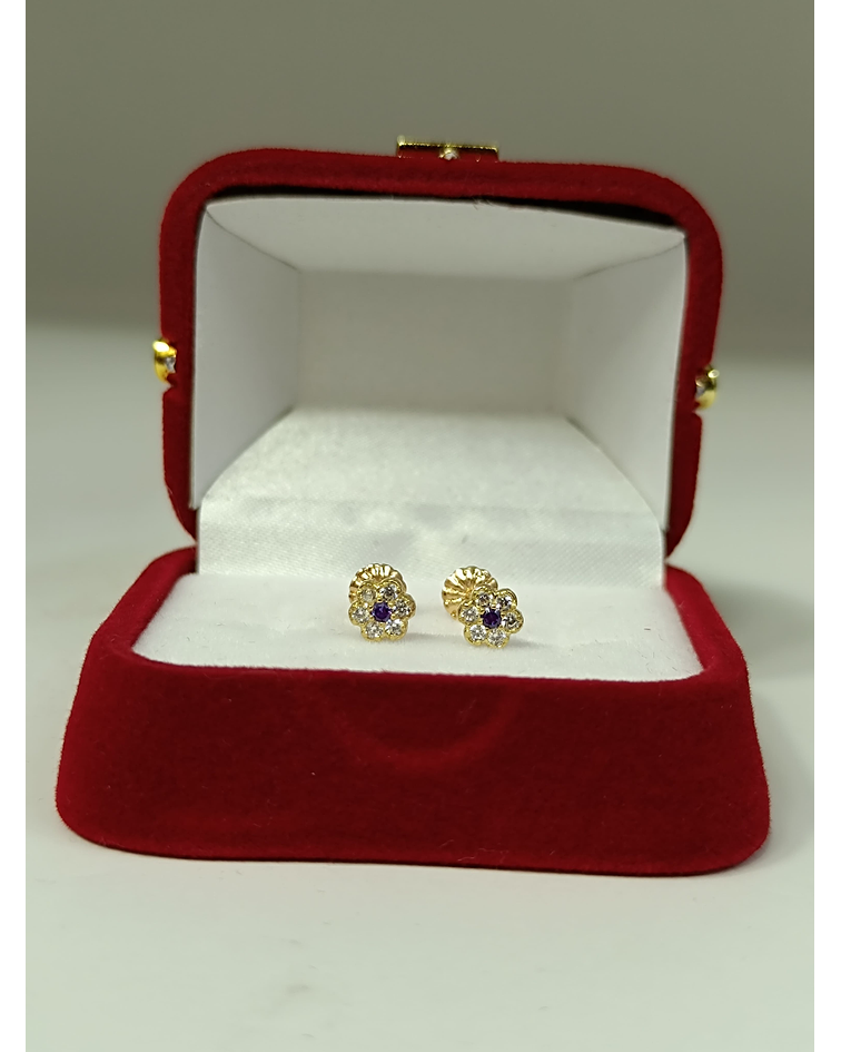 Aros roseta amatista 5 mm 1.2 grs de oro 18k