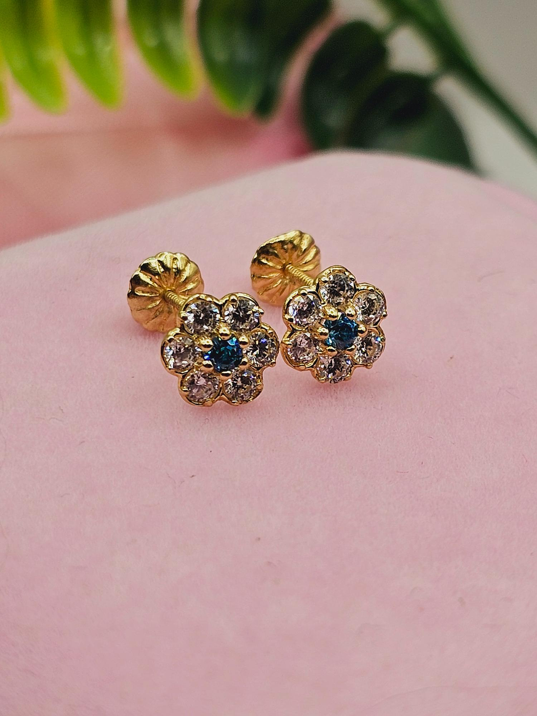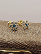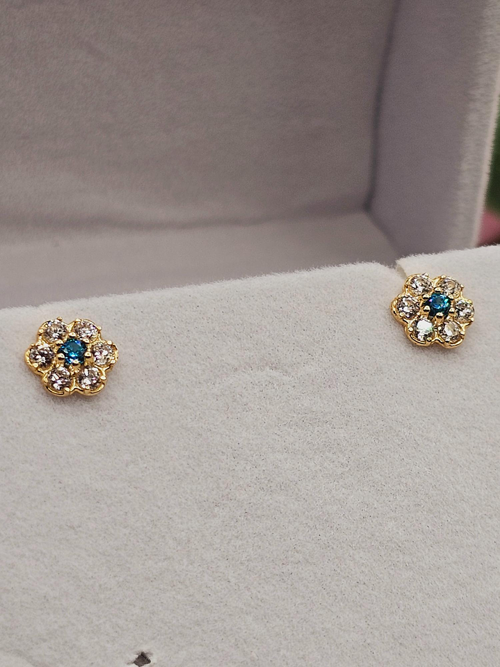 Aros roseta con circones y agua marina 7 mm 1.2 grs Oro 18k