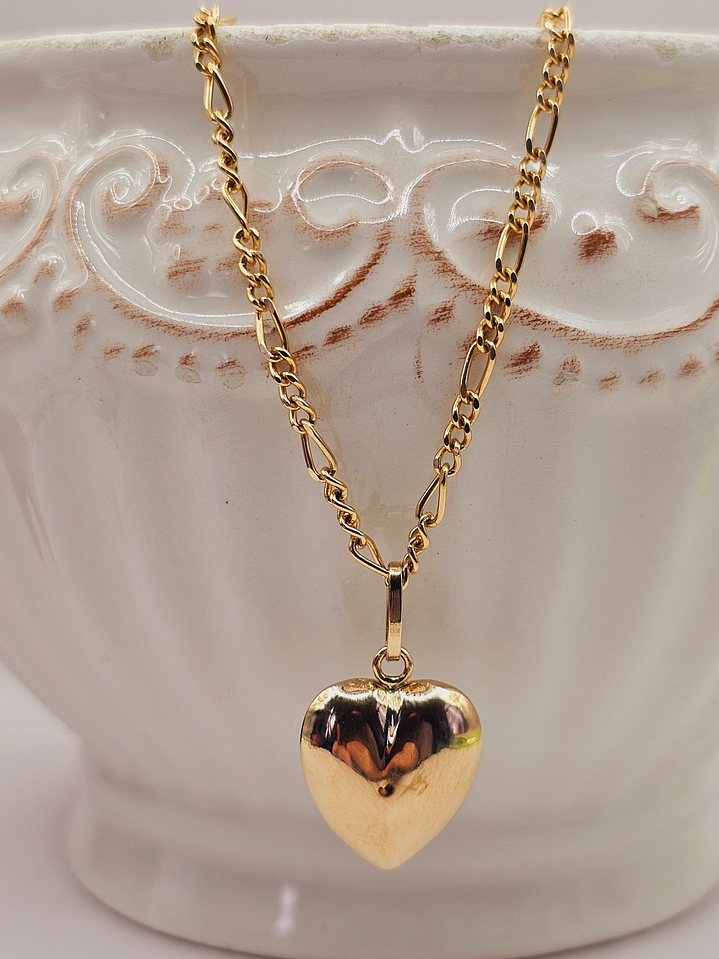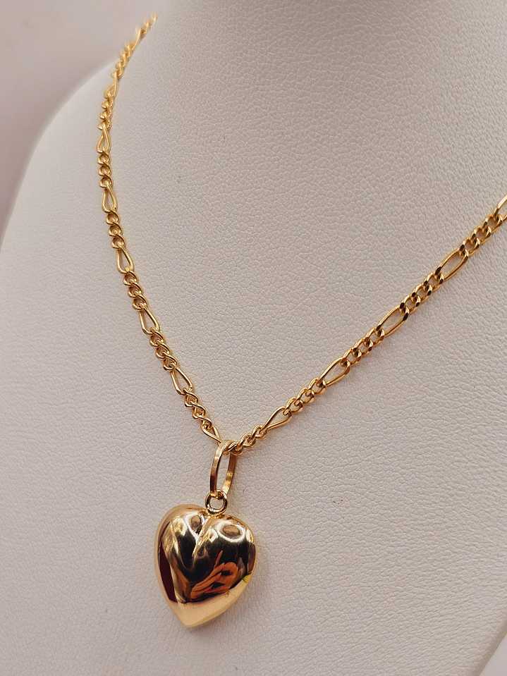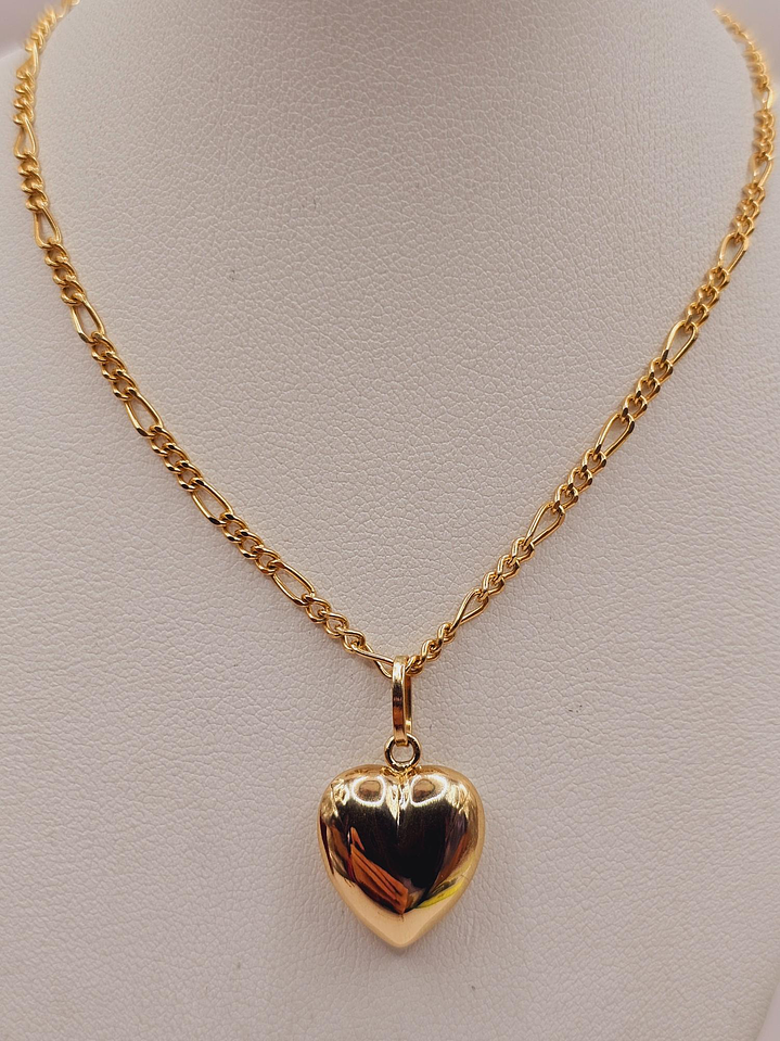 Cadena cartier 50 cm y corazón inflado 2.5 cm 6.4 grs Oro 18k