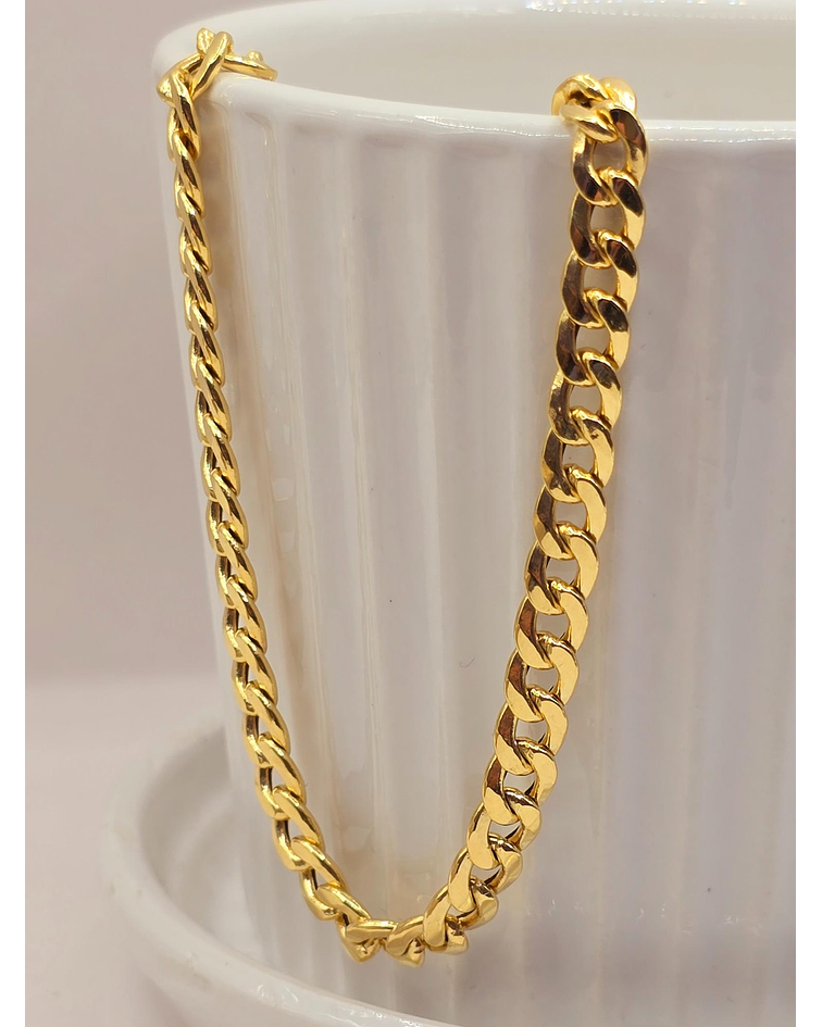 - Eslabones Grumete: Un diseño clásico y robusto, con eslabones entrelazados que aportan textura y un brillo sutil, ideal para quienes buscan una joya con presencia y elegancia.