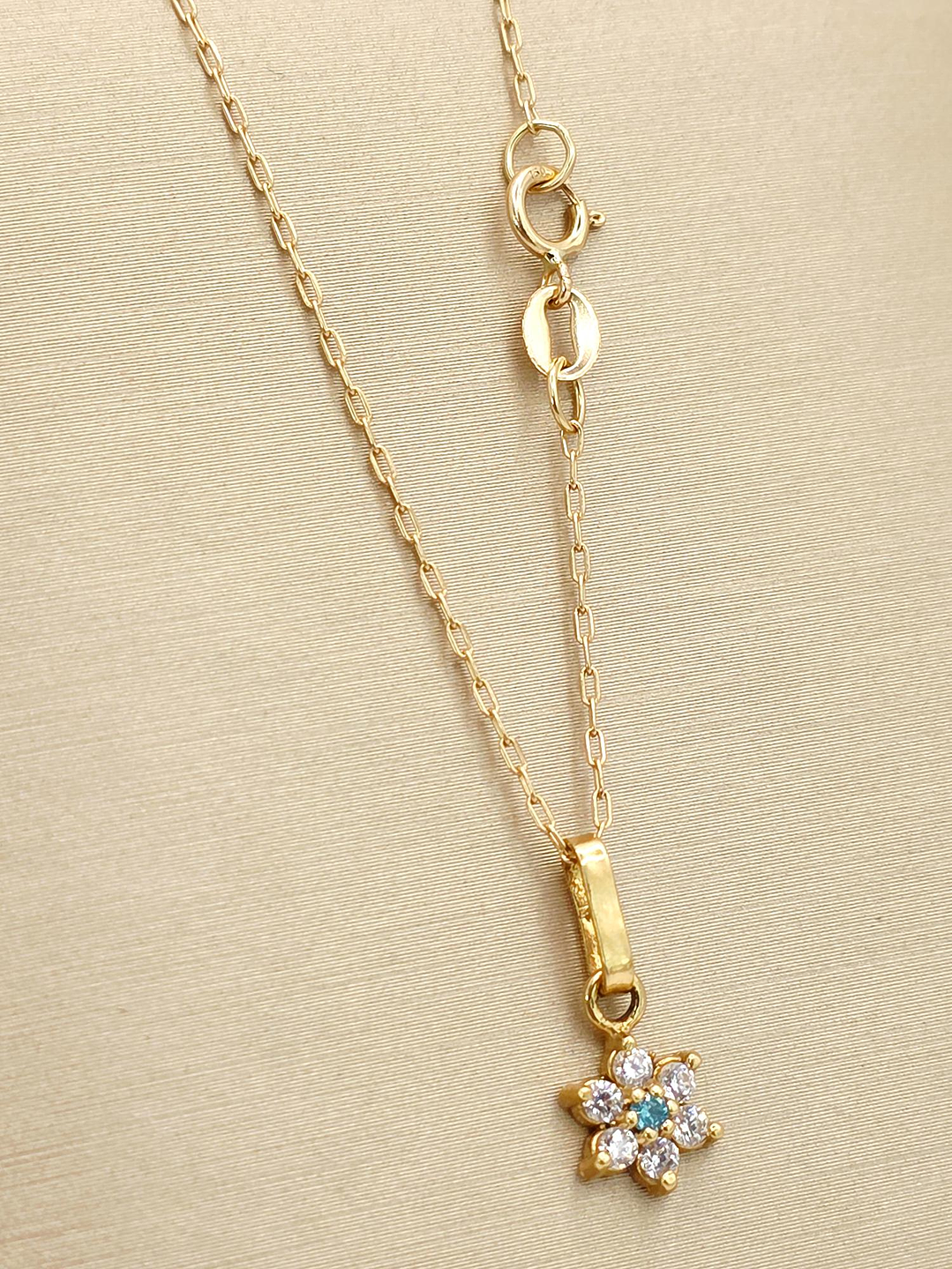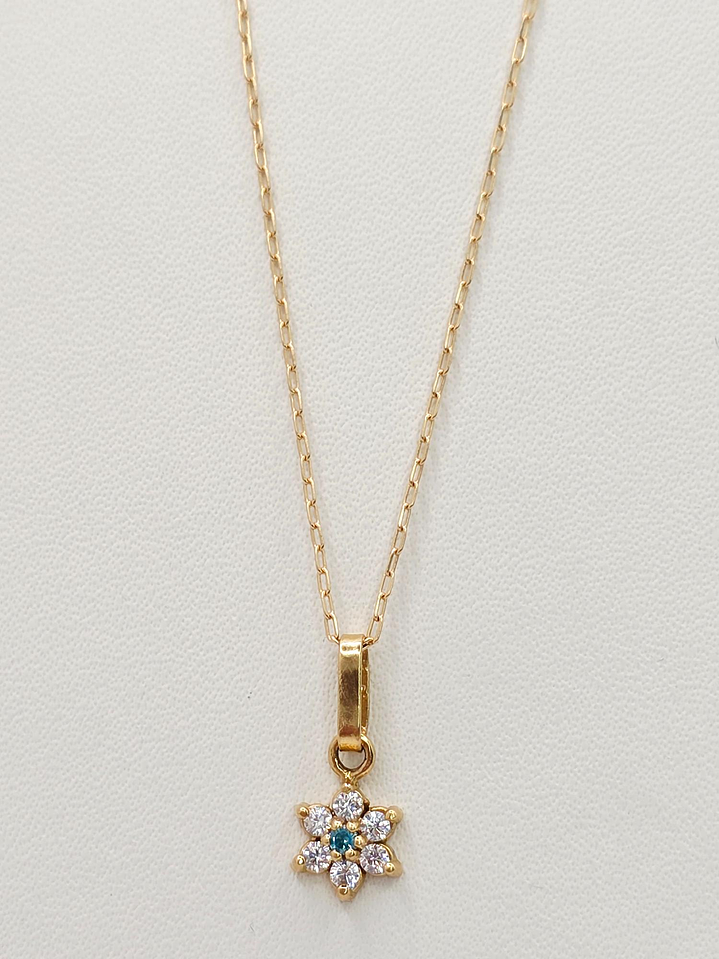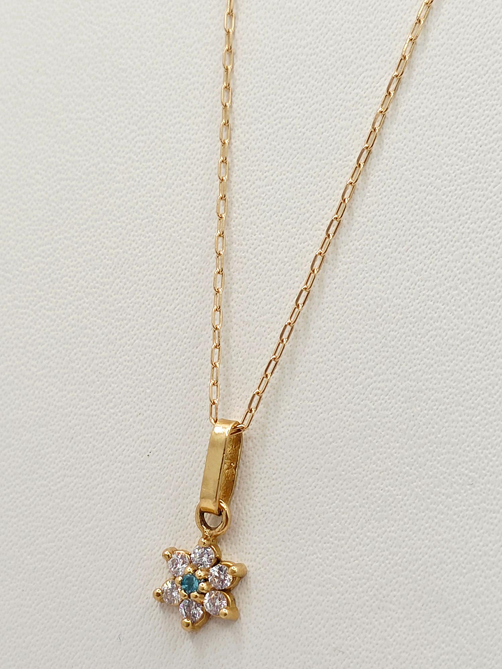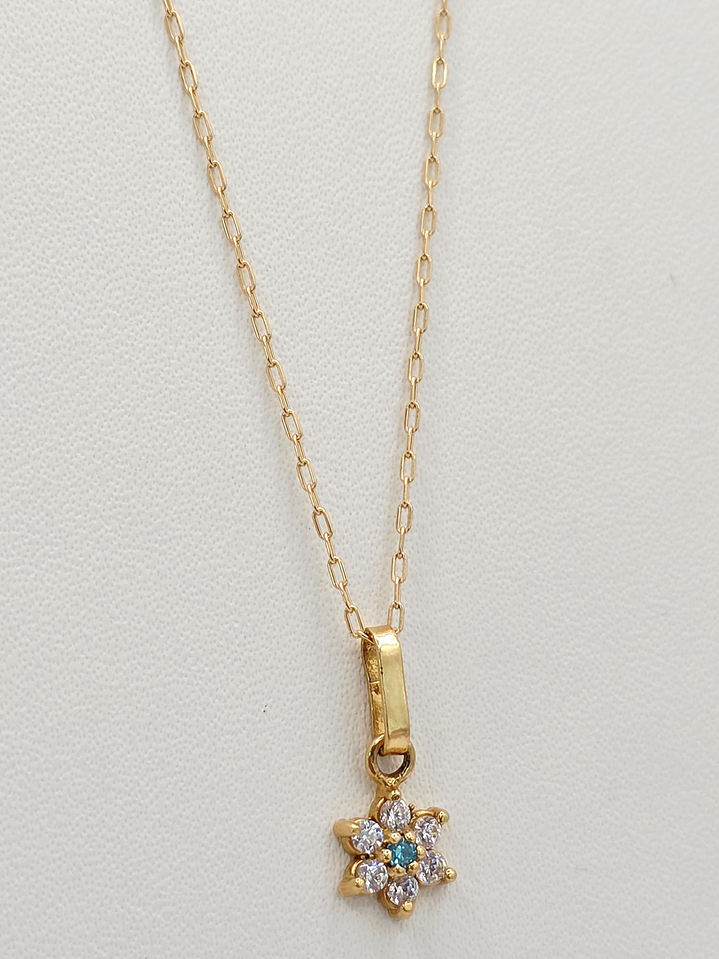 Cadena limada 50 cm con colgante roseta circones y agua marina 7 mm 1.8 grs Oro 18k