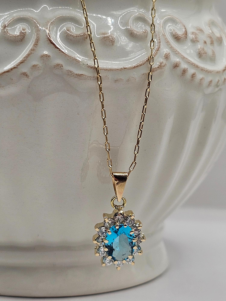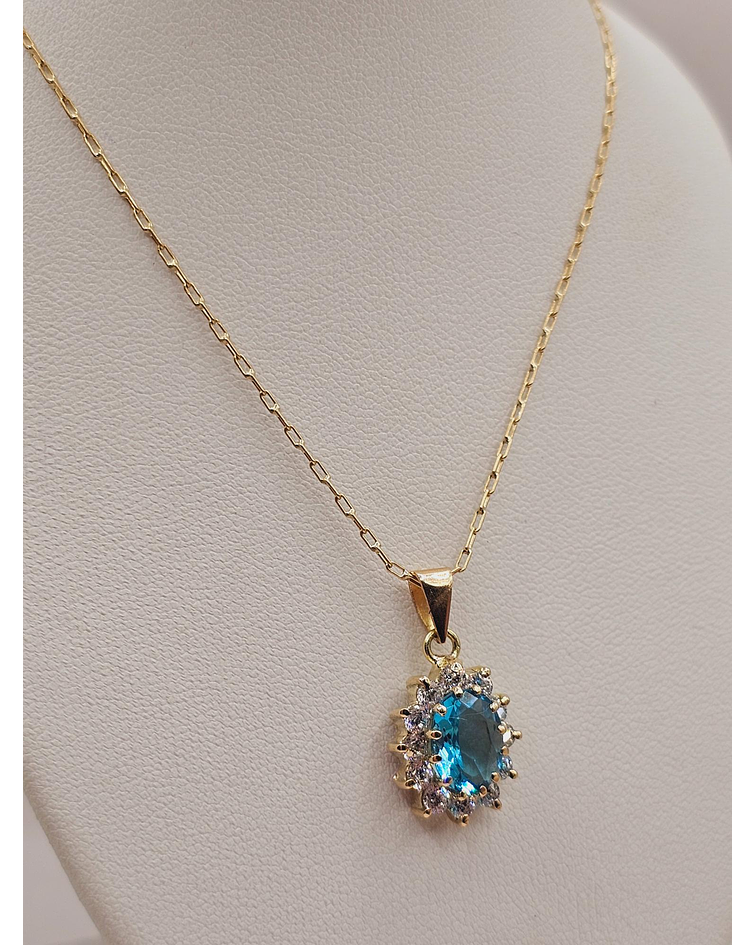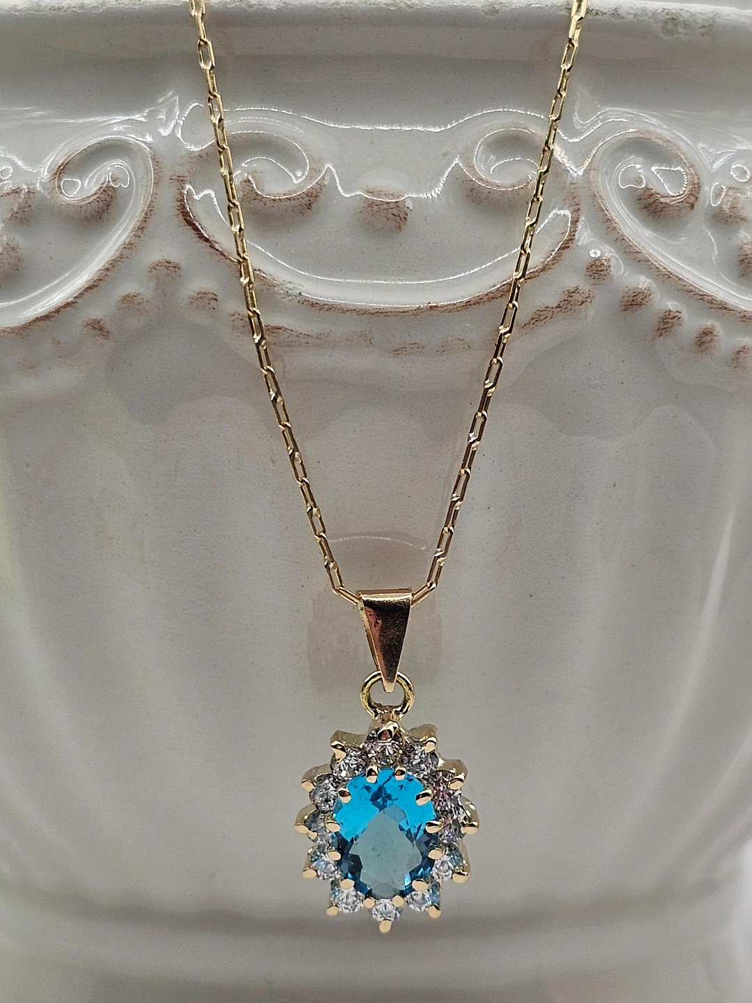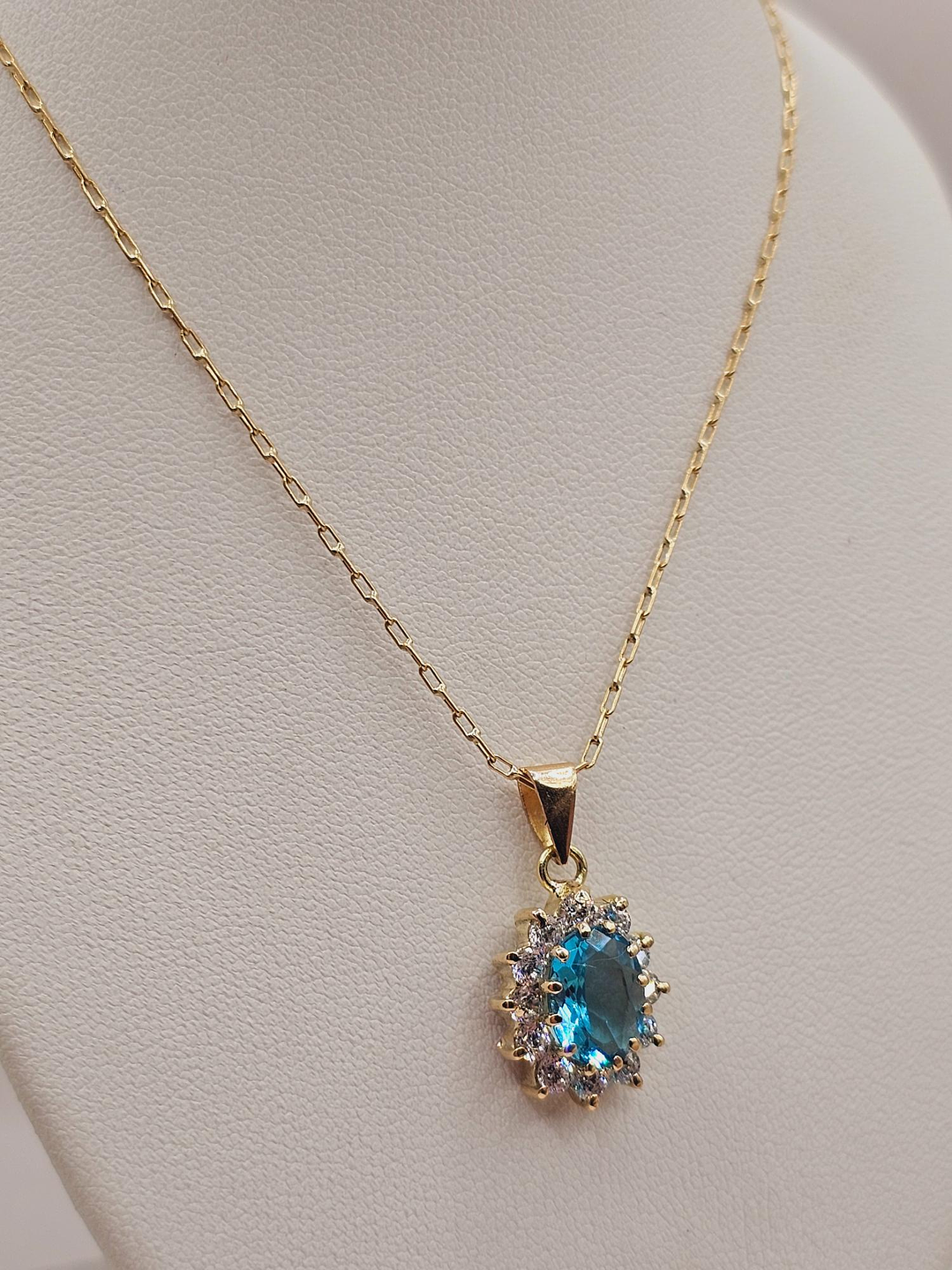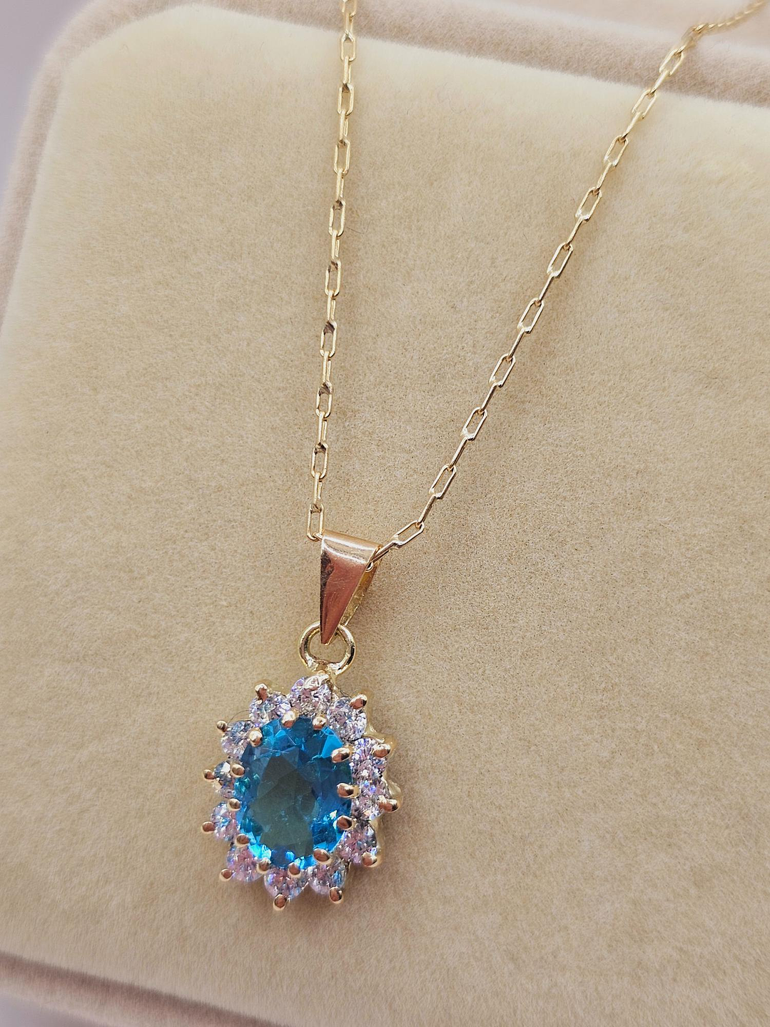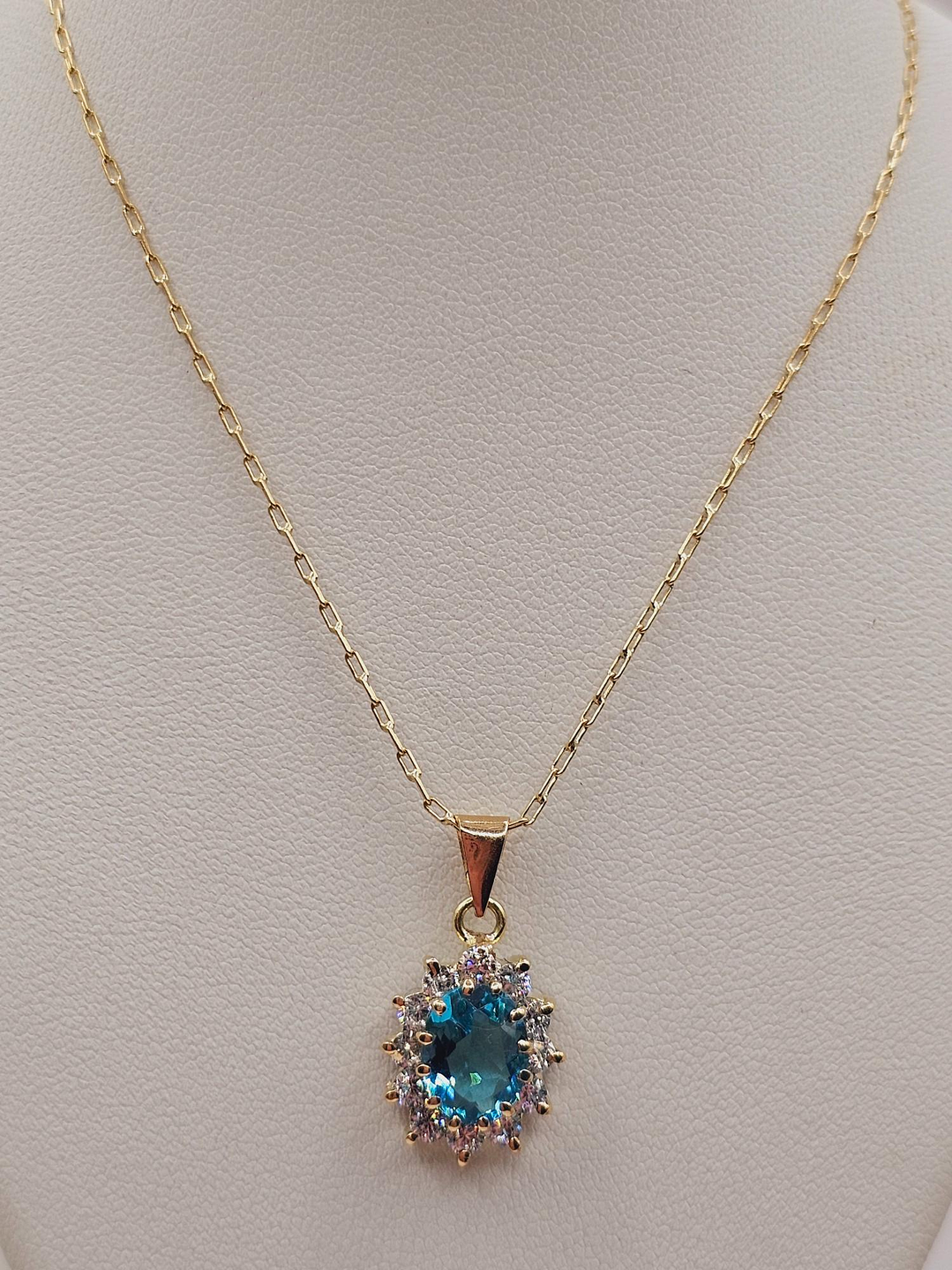 - Colgante Lady Agua Marina con Circones de 2.2 cm: Un agua marina natural, cuidadosamente engastada en un marco de oro 18K adornado con circonitas brillantes, crea un punto focal de serenidad y luminosidad en tu cuello.