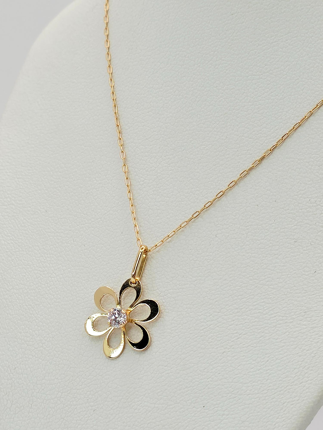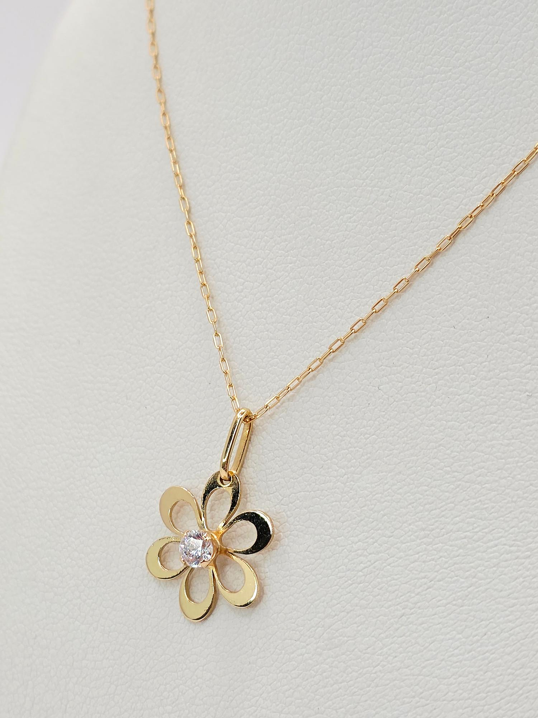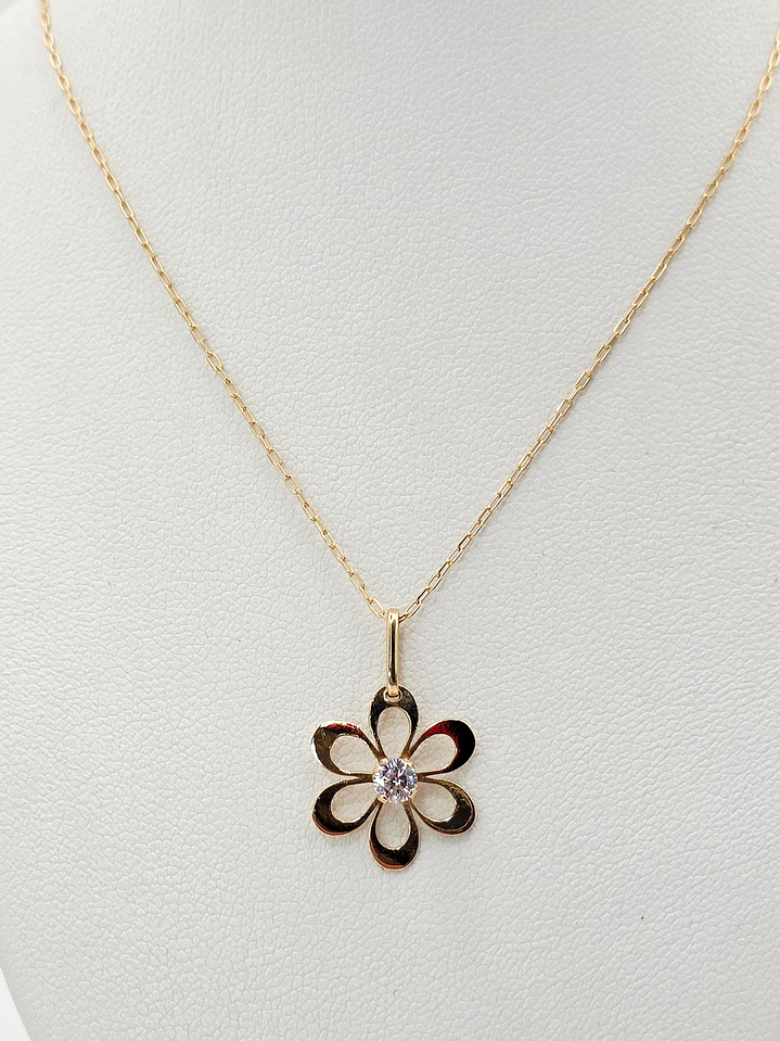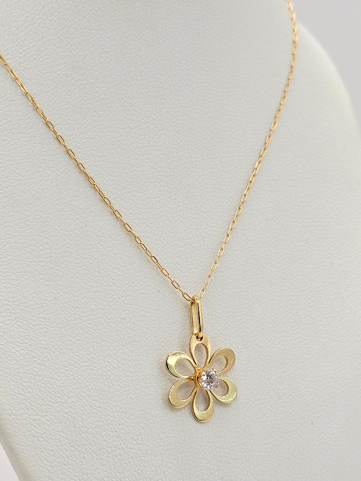Cadena limada 50 cm y colgante margarita circón 2 cm 2 grs Oro 18k