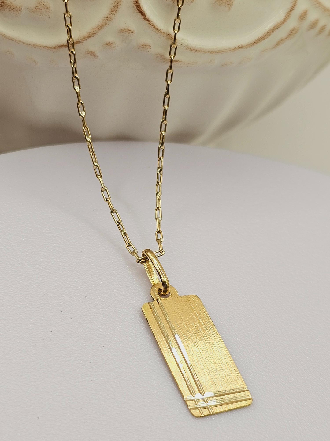Conjunto Cadena Limada y Colgante Placa Tallada en Oro 18K: Sofisticación Elegante y Personalizada