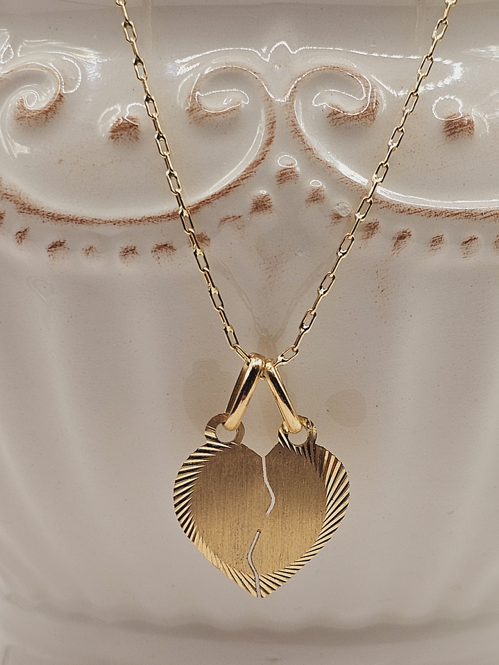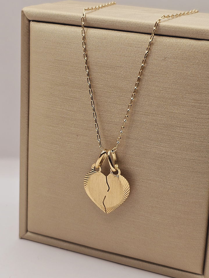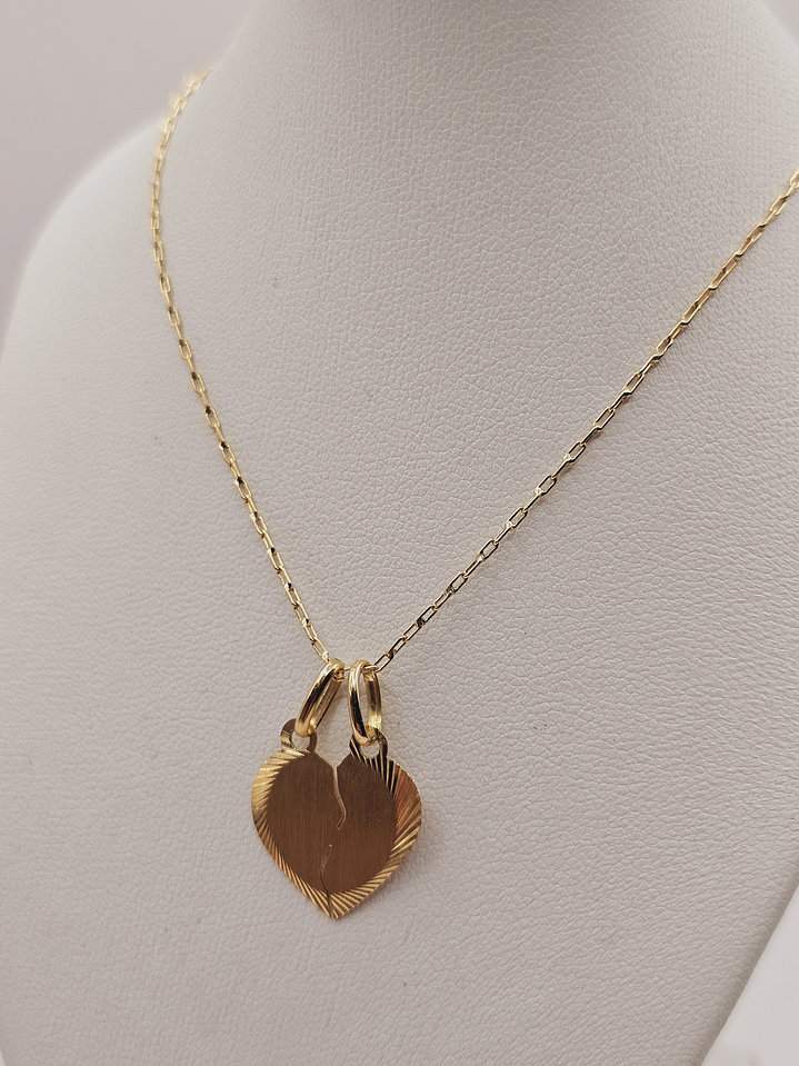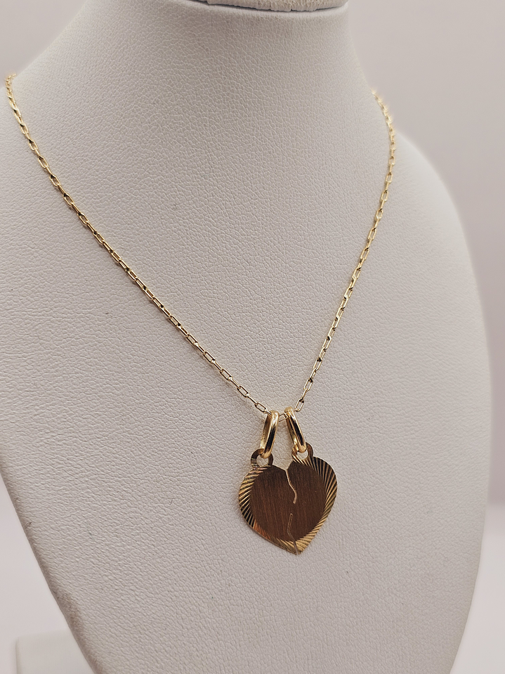 Cadena limada 50 cm y corazón partido 16 mm 3.2 grs Oro 18k