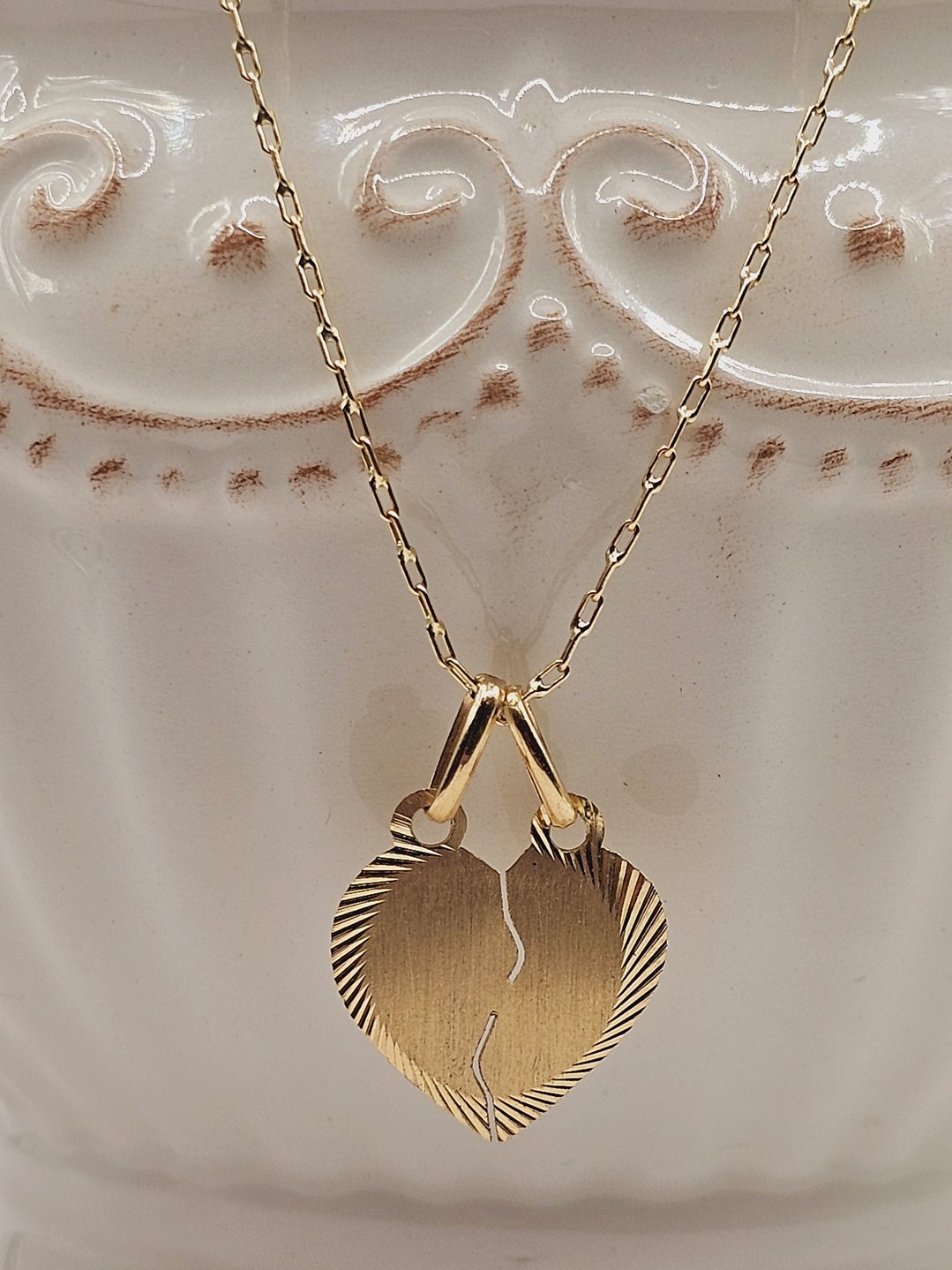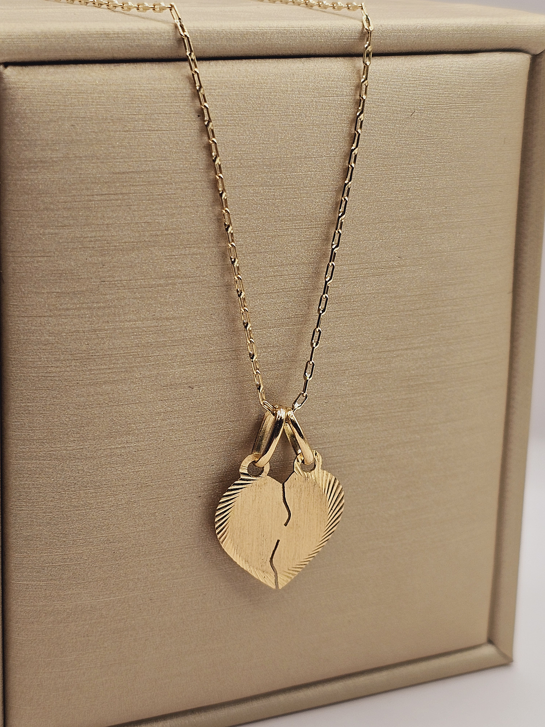 - Colgante de corazón partido de oro de 18 quilates