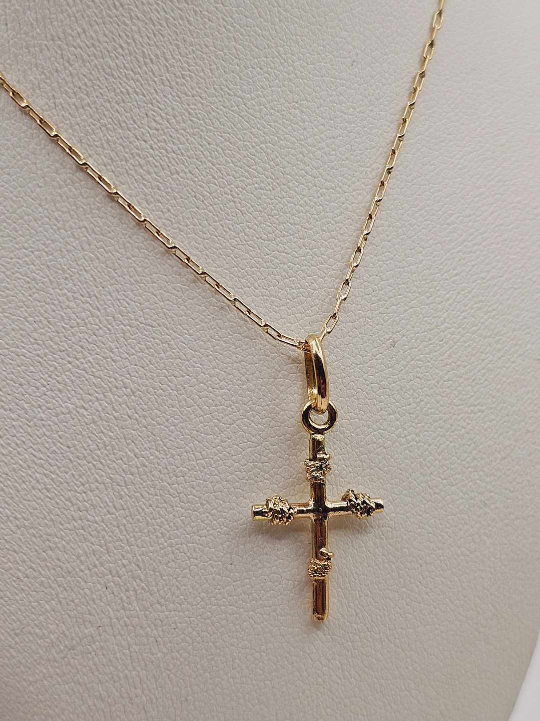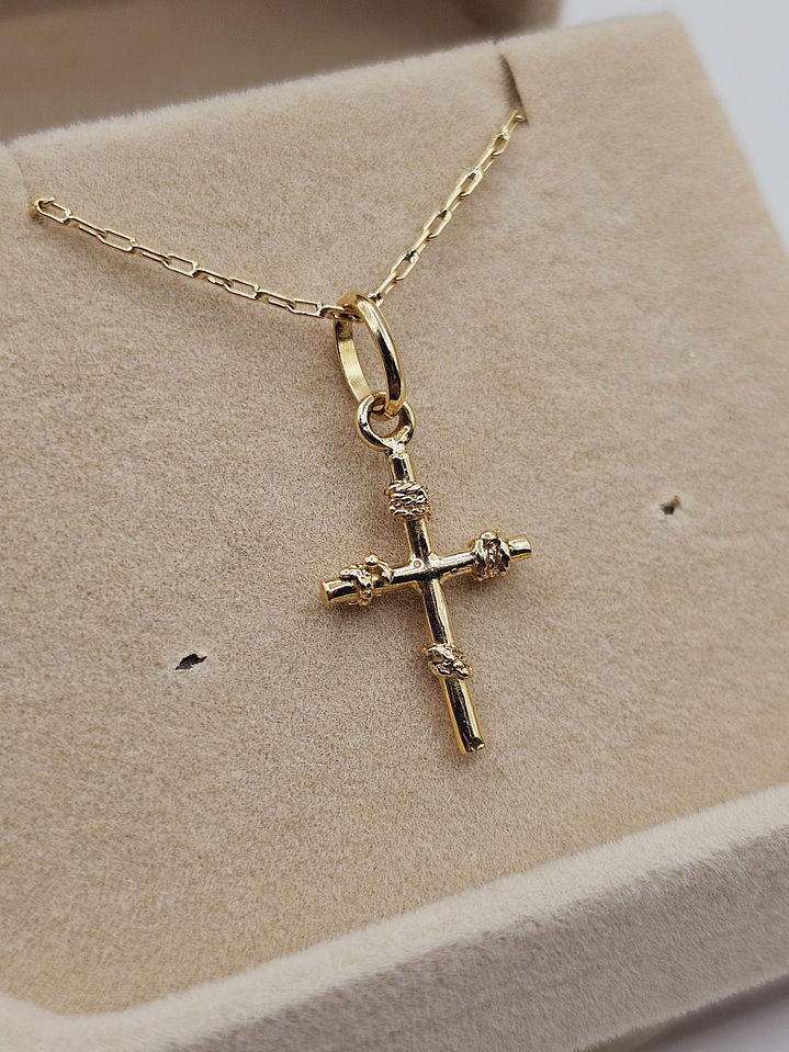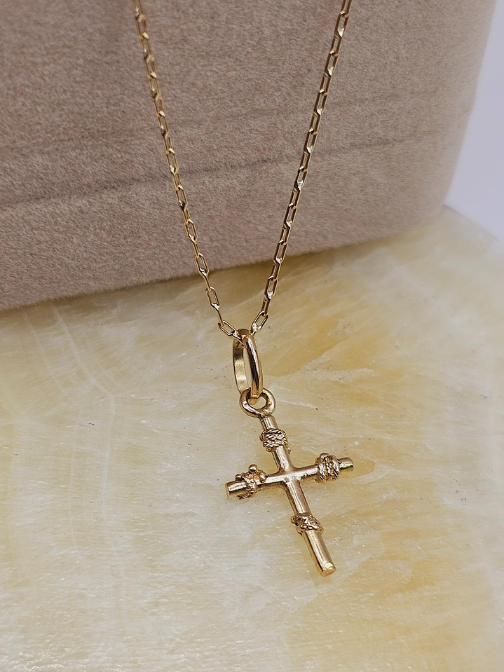 Cadena limada 50 cm y cruz amarras 25 mm 3.3 grs Oro 18k
