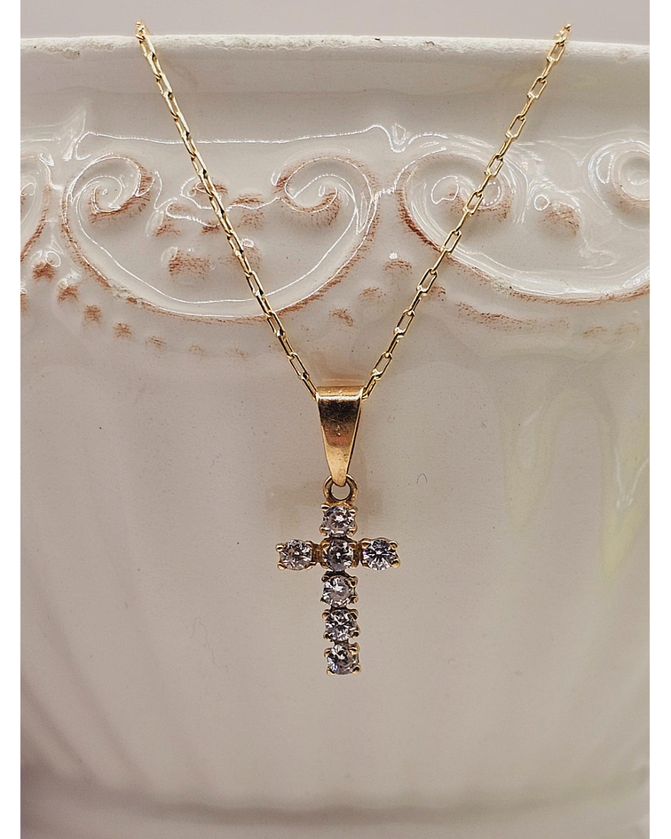 Conjunto Cadena Limada y Colgante Cruz con Circones en Oro 18K: Elegancia y Brillo Sutil ✨