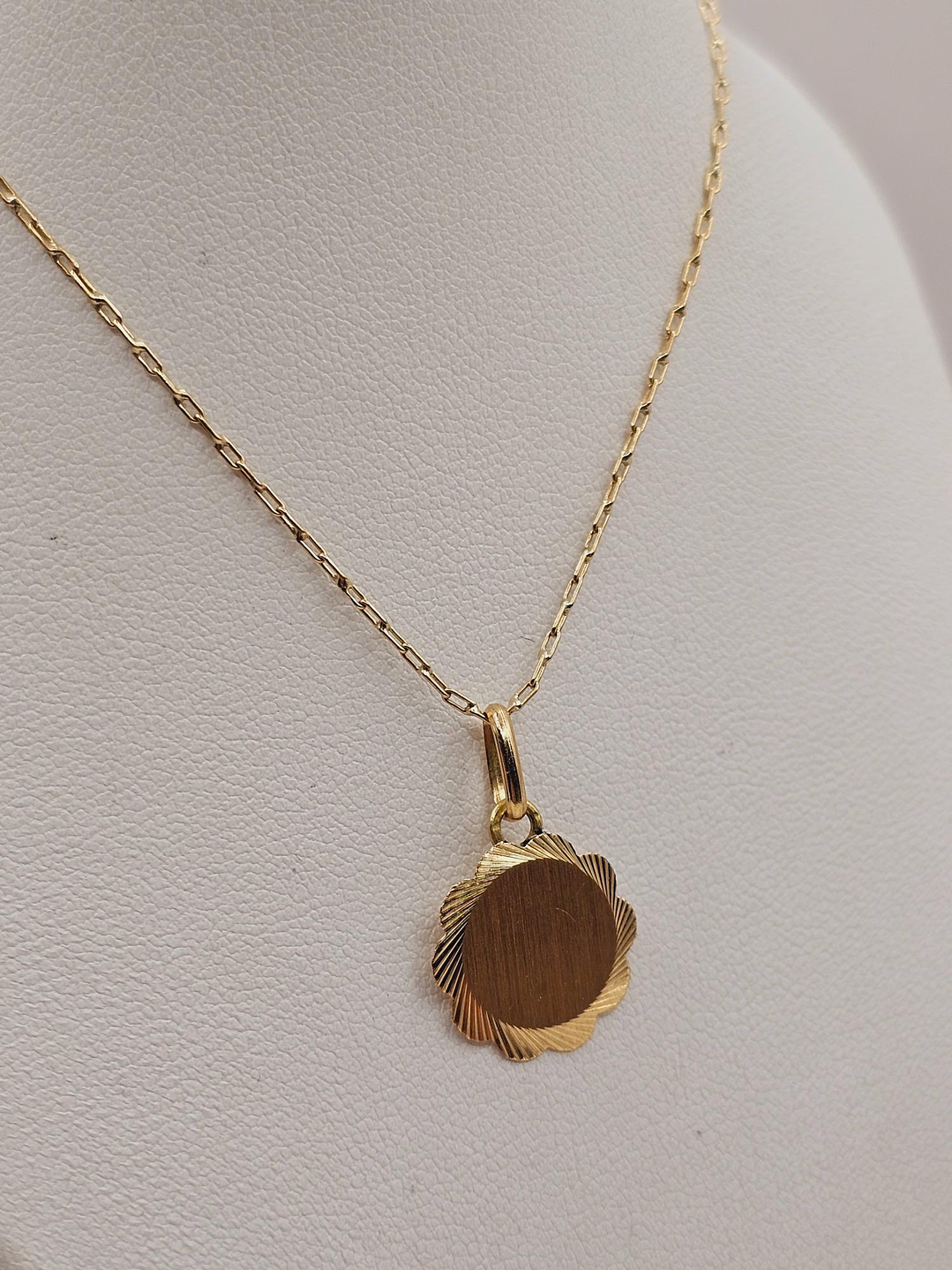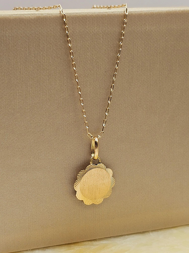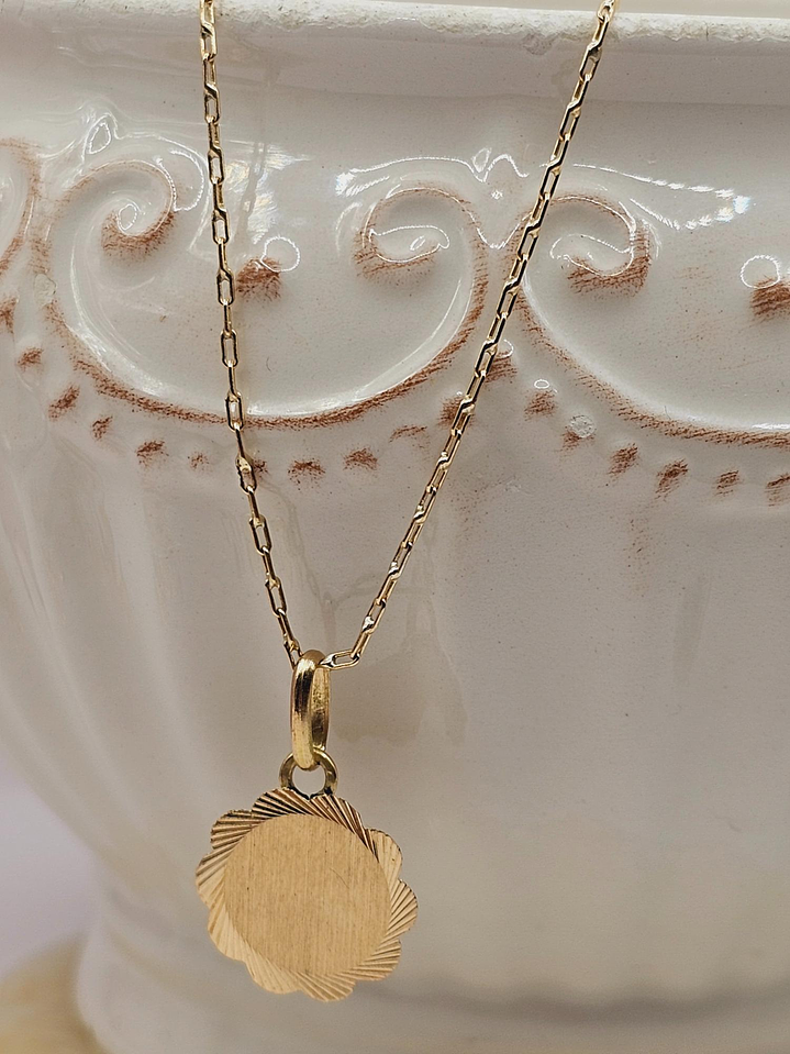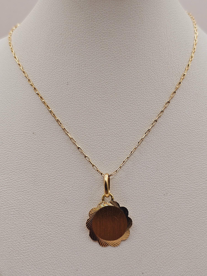 Cadena limada 50 cm y disco flor 14 mm 3 grs Oro 18k