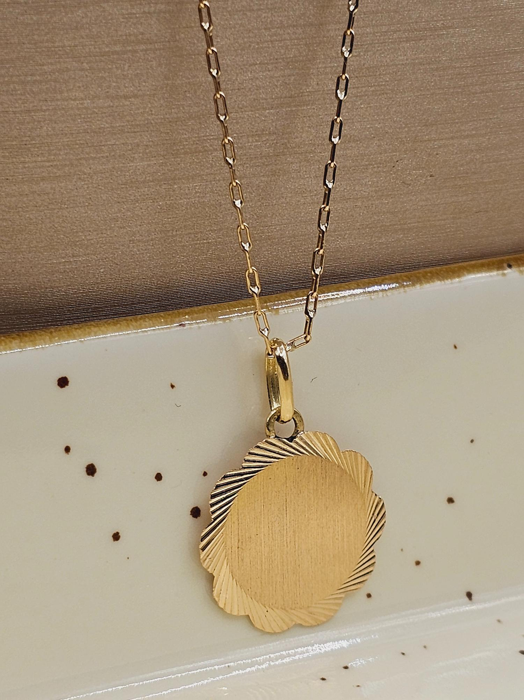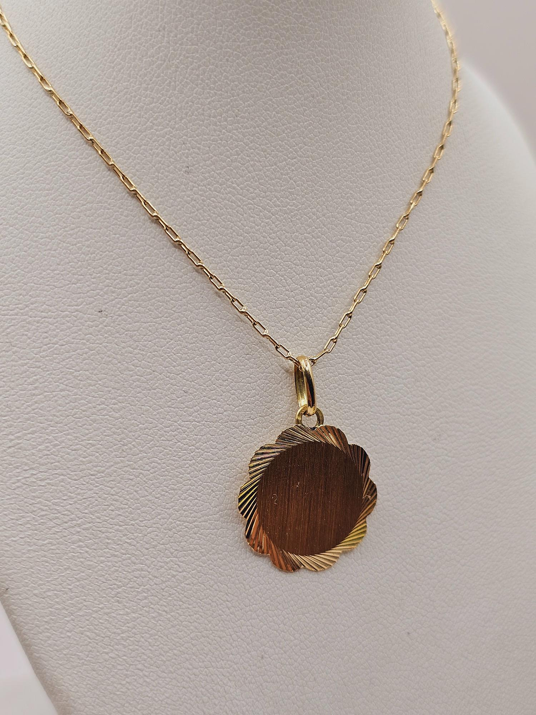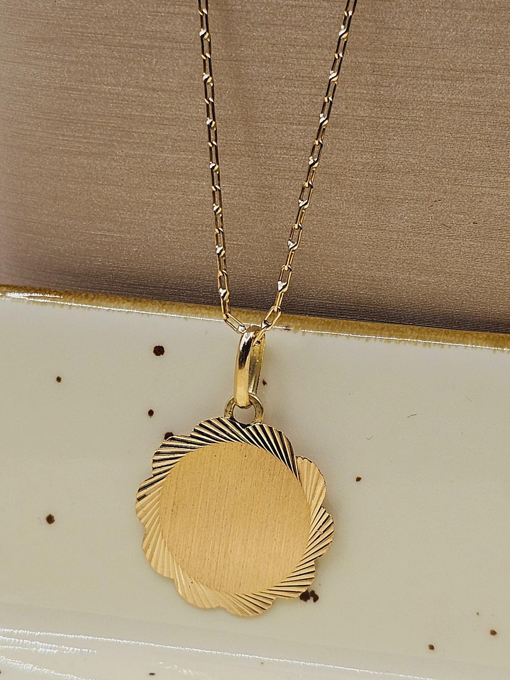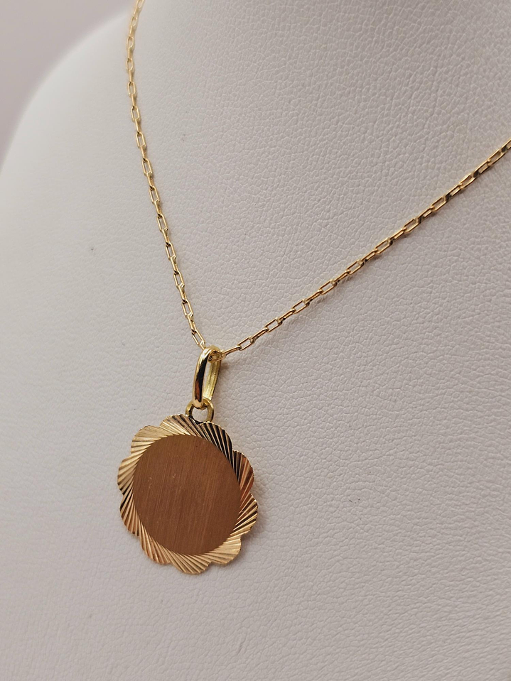 Cadena limada 50 cm y disco flor 18 mm 3.5 grs Oro 18k