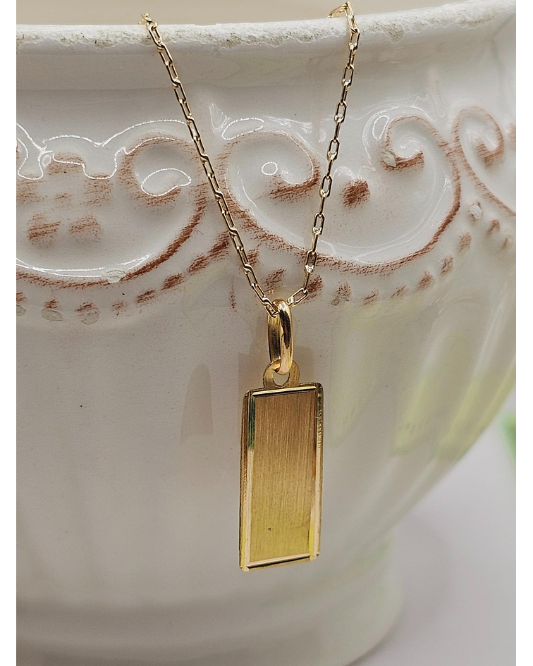 Cadena limada 50 cm y placa rectangular 2 cm 3.1 grs Oro 18k