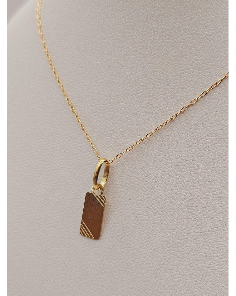 Cadena limada 50 cm y placa satinada 1.7 cm 1.5 grs Oro 18k