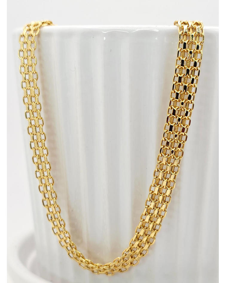 Haz una declaración de estilo audaz y sofisticada con nuestra impresionante Cadena Tejido Chino de 60 cm en Oro Italiano 750 (18K). Meticulosamente elaborada por maestros orfebres en Italia, esta joya excepcional es una obra de arte que combina la originalidad de un diseño ancestral con el lujo más puro, pensada para quienes aprecian la máxima calidad y una presencia que cautiva.