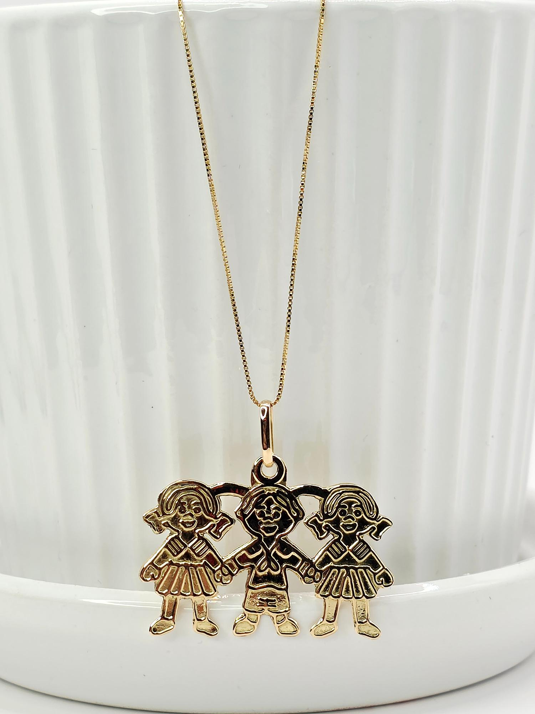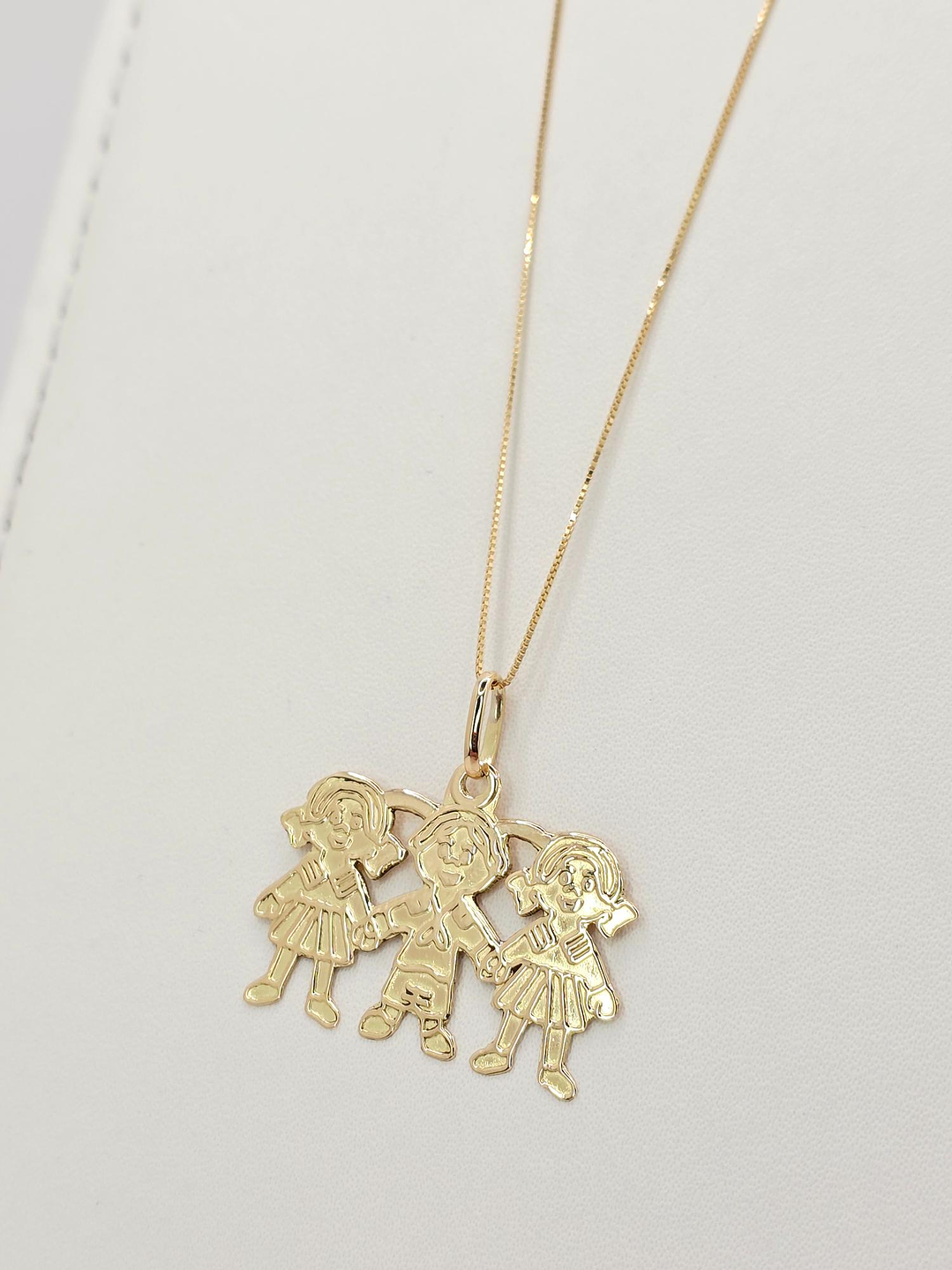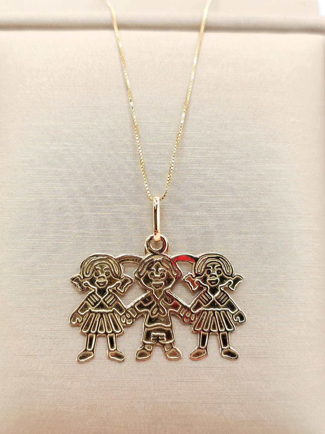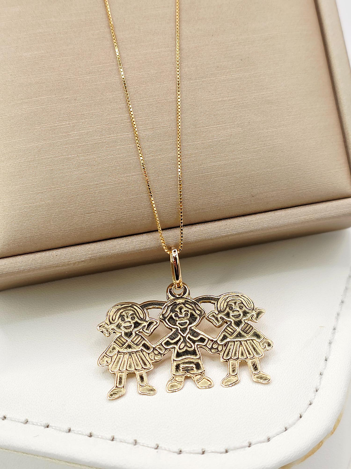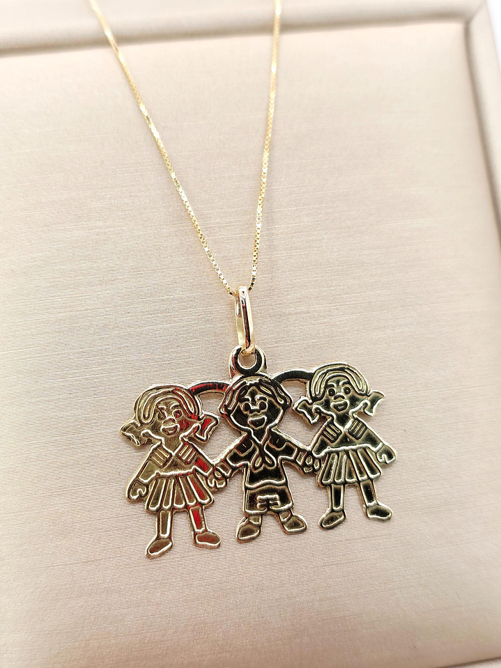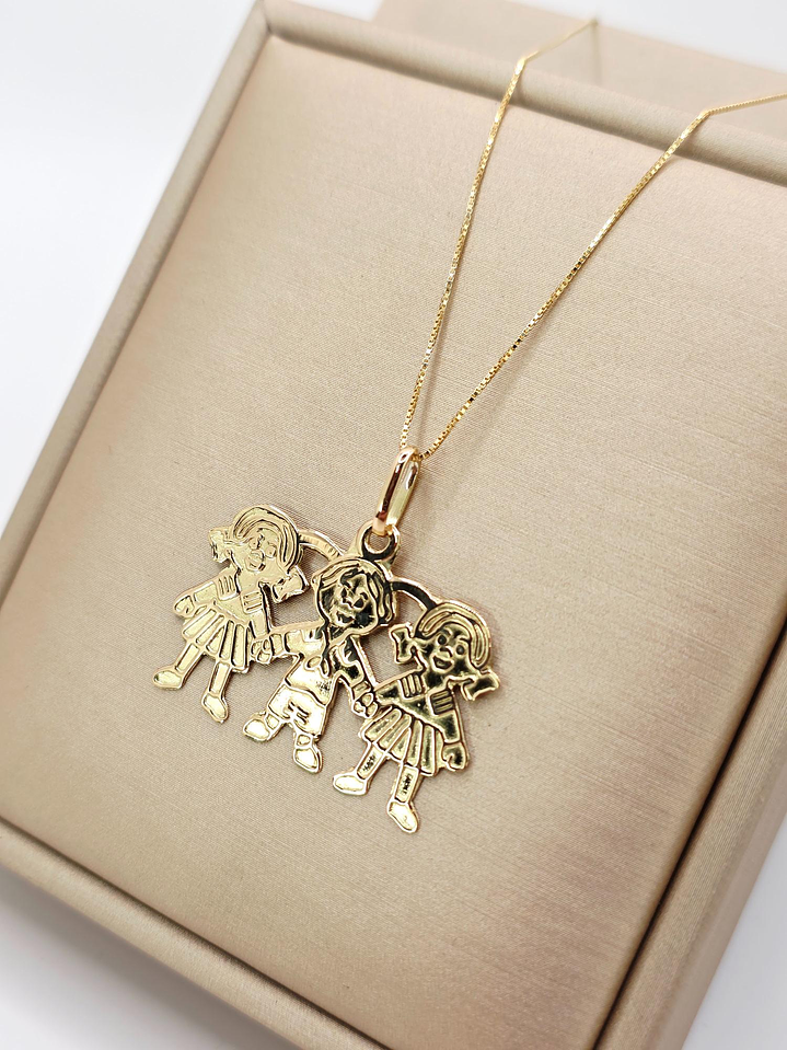 Conjunto Cadena Veneciana y Colgante Tres Niñ@s en Oro 18K: ¡Un Abrazo Familiar que Brilla en tu Cuello! 👨👩👧👦💖✨