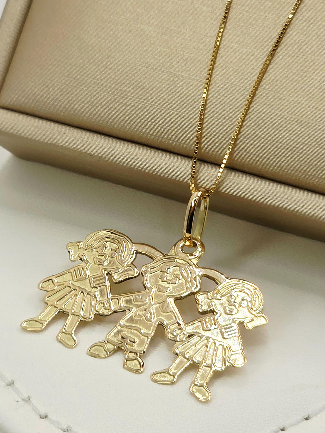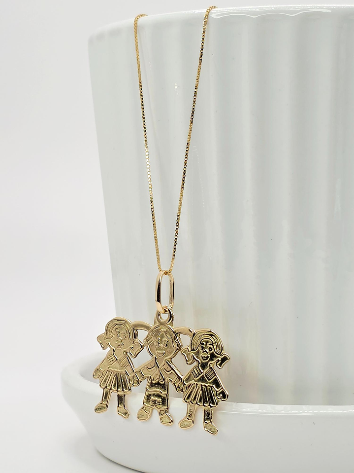 Cadena veneciana 50 cm y colgante tres niñ@s 3 cm 4 grs Oro 18k