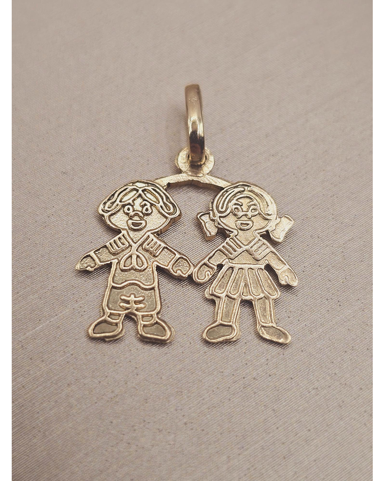 Colgante niña y niño 2.3 cm 1.6 grs Oro 18k