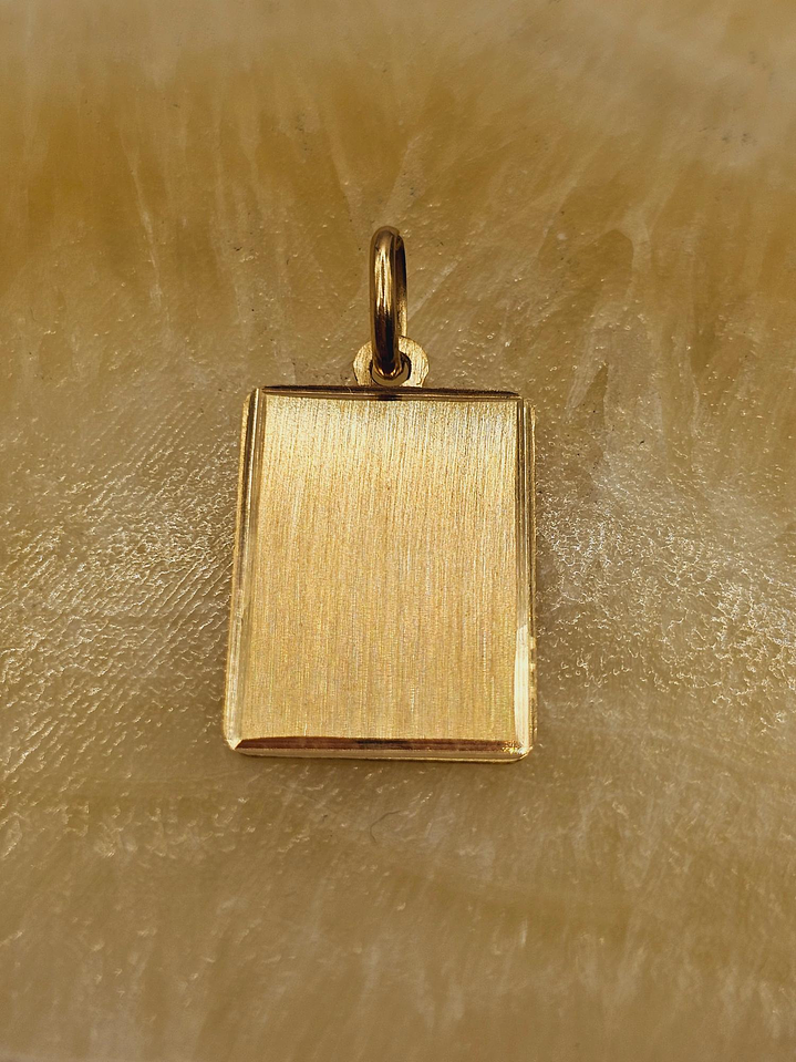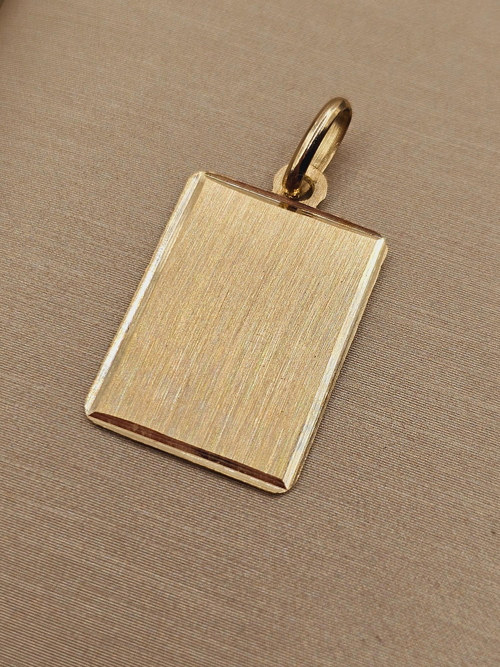 Colgante placa satinada bordes 19 mm 1.8 grs Oro 18k