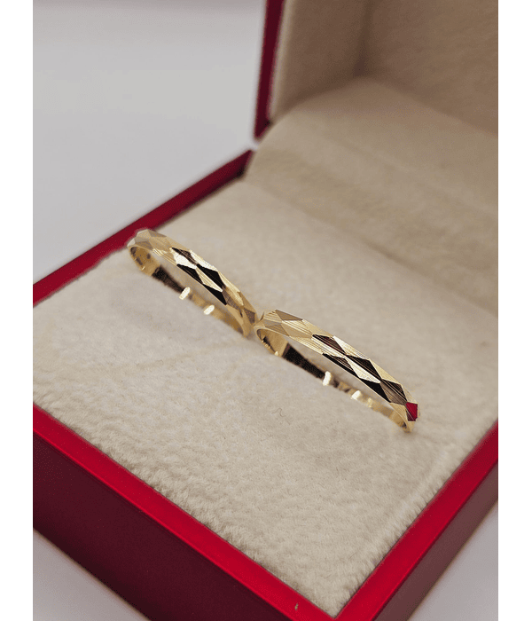 ✨ Celebra el comienzo de una nueva vida juntos con nuestras deslumbrantes Ilusiones Talladas Asteriscos en Oro 18K. Estas alianzas de boda, meticulosamente diseñadas, fusionan la belleza radiante del oro con el simbolismo celestial del asterisco, representando la guía y la luz que los acompañará en su camino juntos.