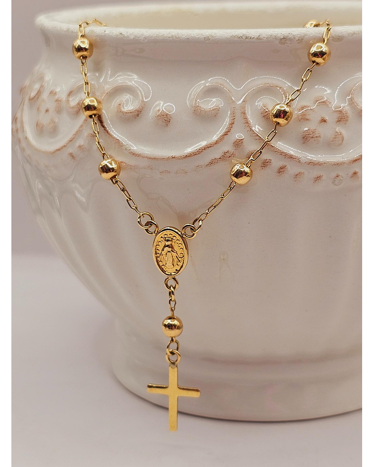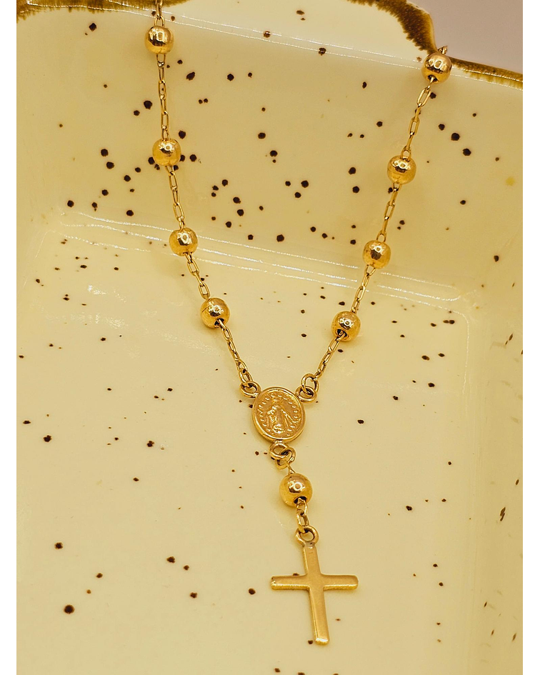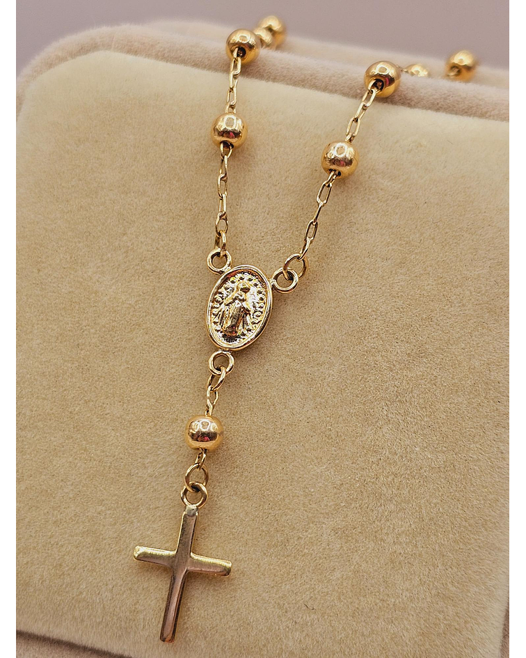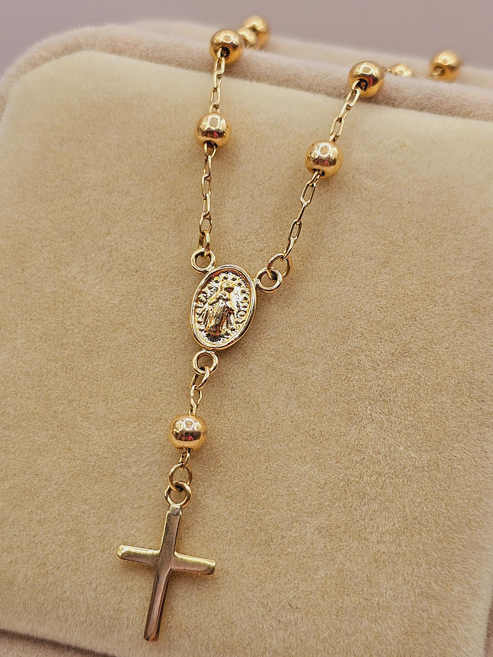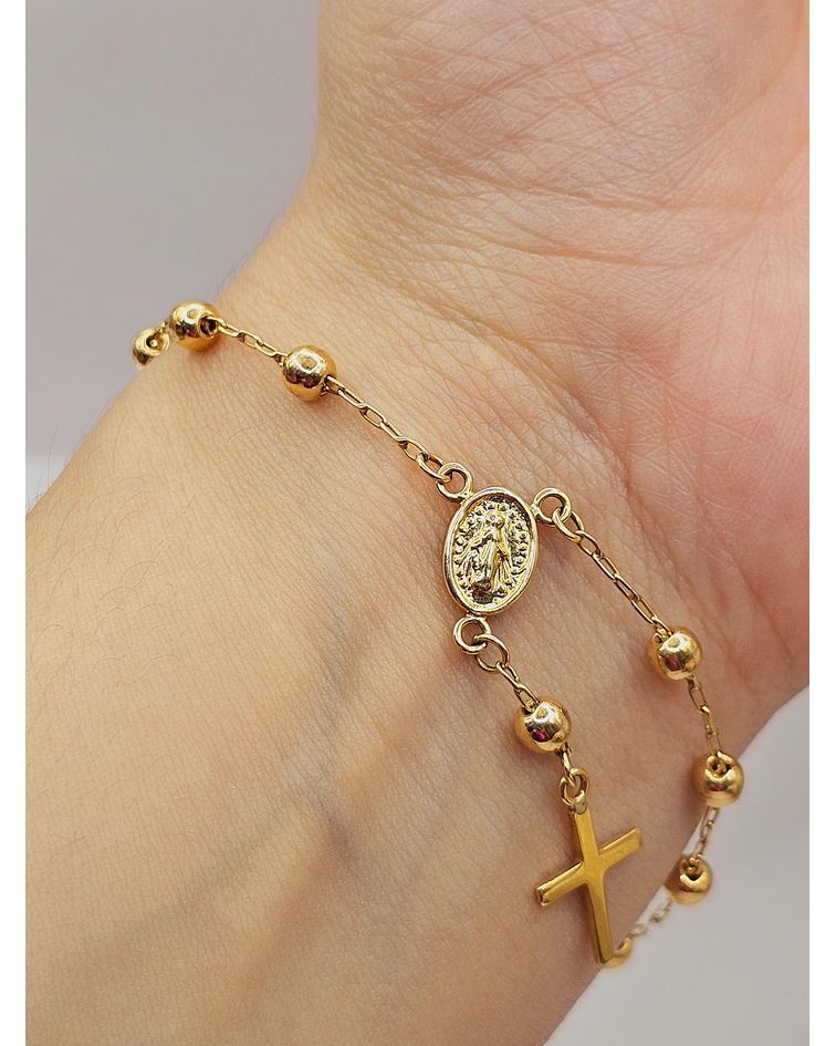 - Diseño Denario Clásico: Las delicadas cuentas de oro y la cruz tradicional crean un diseño armonioso y elegante. 🌟 La pulsera está pensada para llevarse a diario, aportando un brillo sutil y constante.