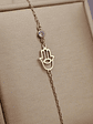 - Circón brillante: Un circón de calidad superior, cuidadosamente engastado en la Mano de Fátima, aporta un toque de luz y energía positiva a la joya.