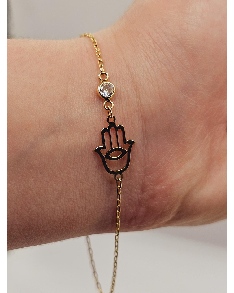 Pulsera Mano de Fátima con Circón en Oro 18K: Protección y Elegancia en tu Muñeca