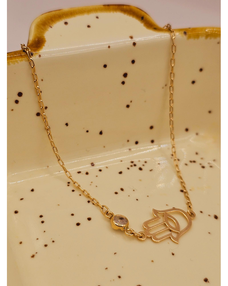 Pulsera mano de Fátima y circón 19 cm 1.5 grs Oro 18k