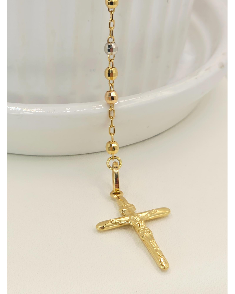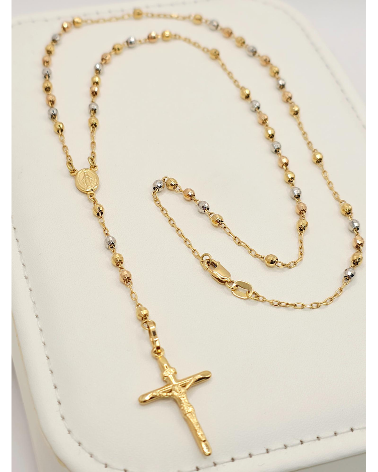 Luce un diseño clásico y elegante con nuestro exquisito Rosario Bicolor en Oro Italiano 750 (18K). Esta joya, meticulosamente elaborada, es un tributo a la sofisticación y la artesanía de alta calidad, perfecta para añadir un toque de distinción a cualquier atuendo.